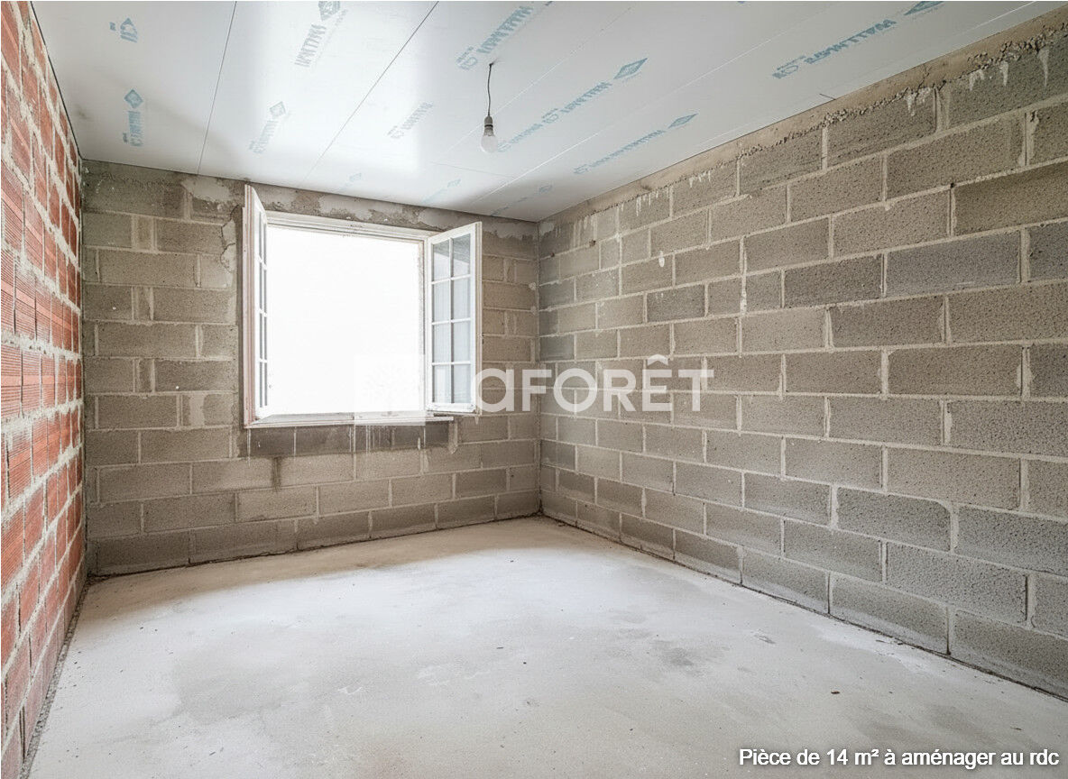 Au rez-de-chaussée : entrée avec placard, pièce de 14 m² à aménager (chambre, bureau, activité professionnelle), grand garage de 42 m².