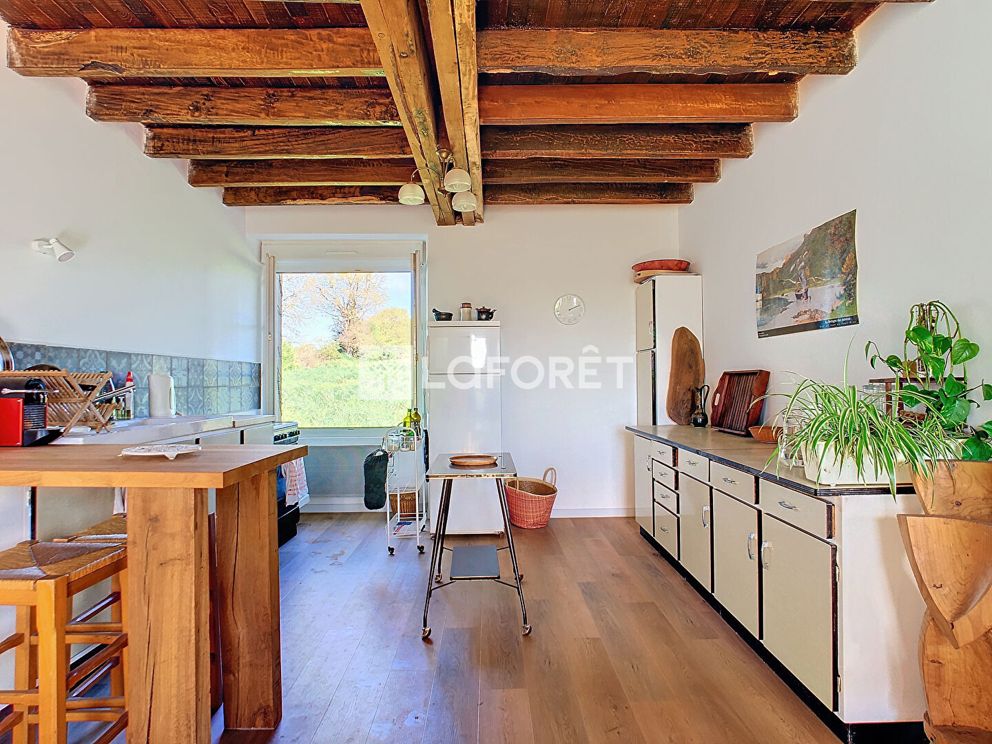 - Lumineuse pièce de vie exposée plein sud, avec cuisine ouverte et poêle à bois pour des soirées chaleureuses.