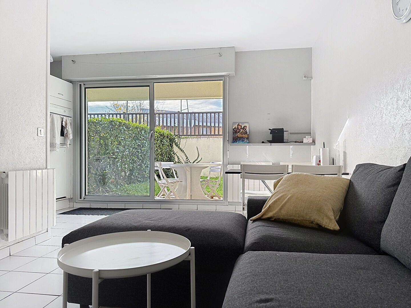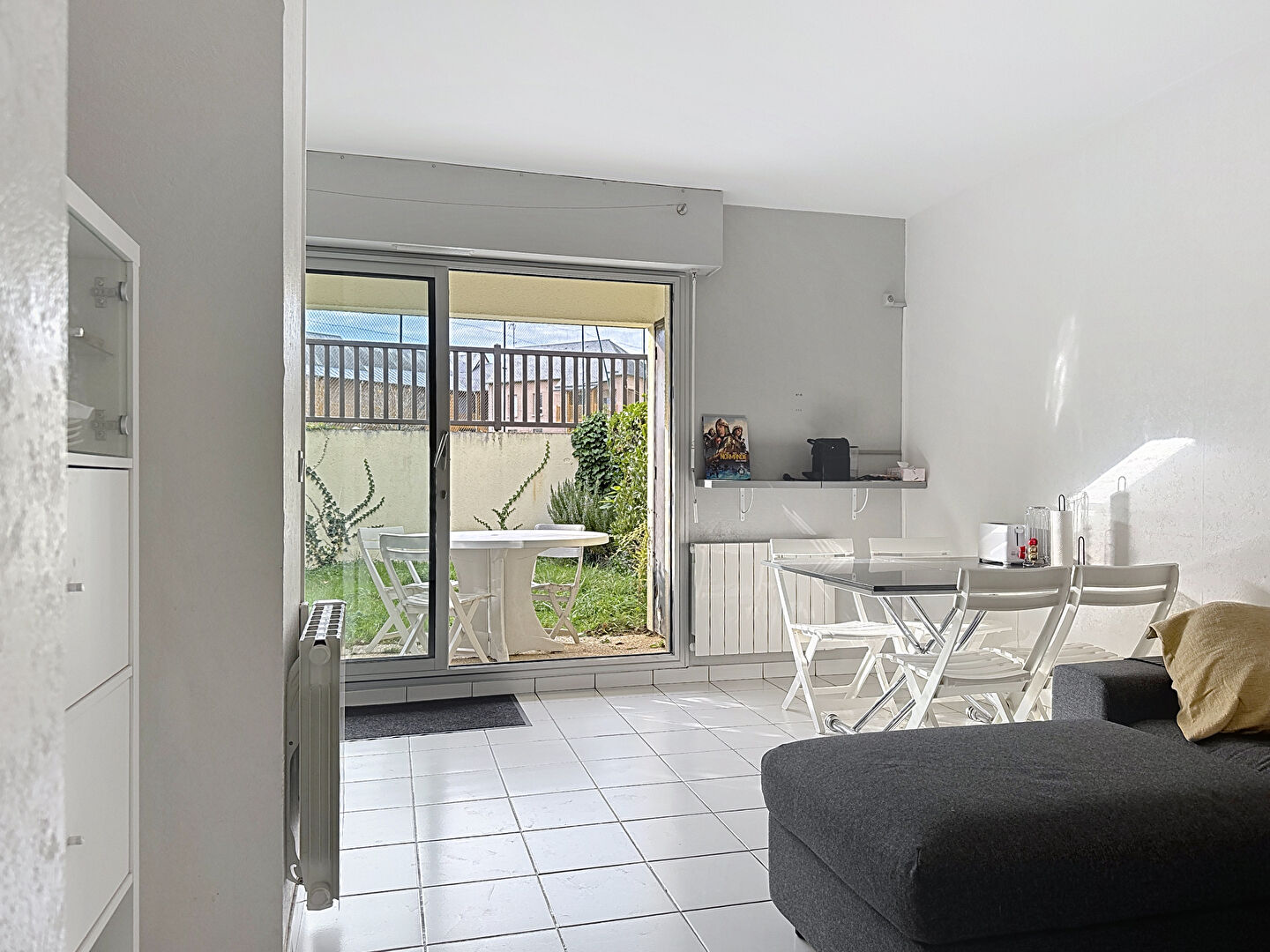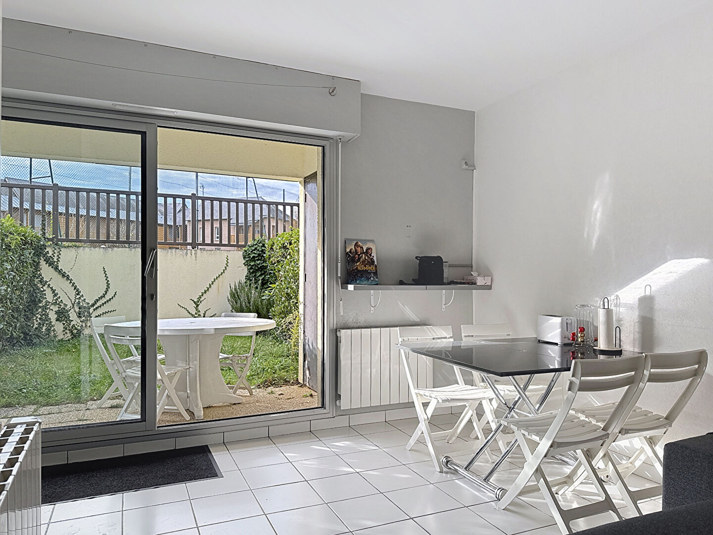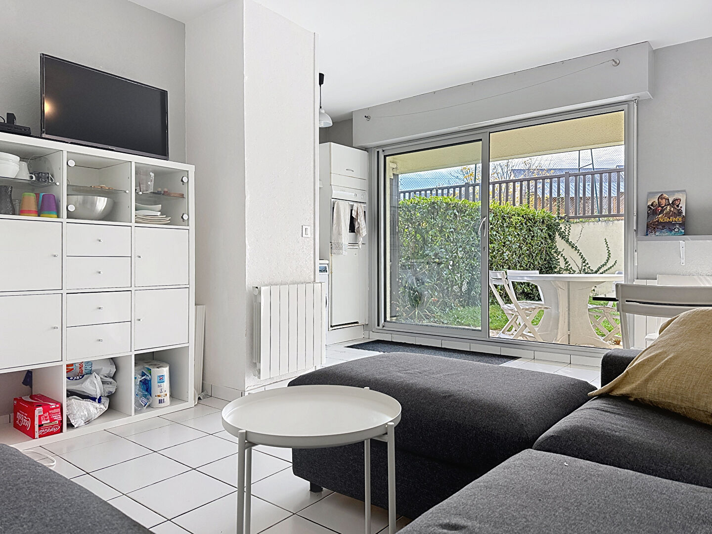 Situé au calme, dans une résidence avec tennis à 500 mètres des commerces et 800 mètres de la plage, cet appartement se compose d'une entrée avec placard, d'un séjour de 19,5m² avec cuisine ouverte aménagée et équipée, d'une chambre, d'une salle de bains et d'un WC séparé. Le séjour et la cuisine ouvrent sur une terrasse couverte et le jardin. Un cellier attenant à la terrasse vous permettra de ranger barbecue, salon de jardin, tondeuse, etc. La résidence dispose d'un garage à vélo.