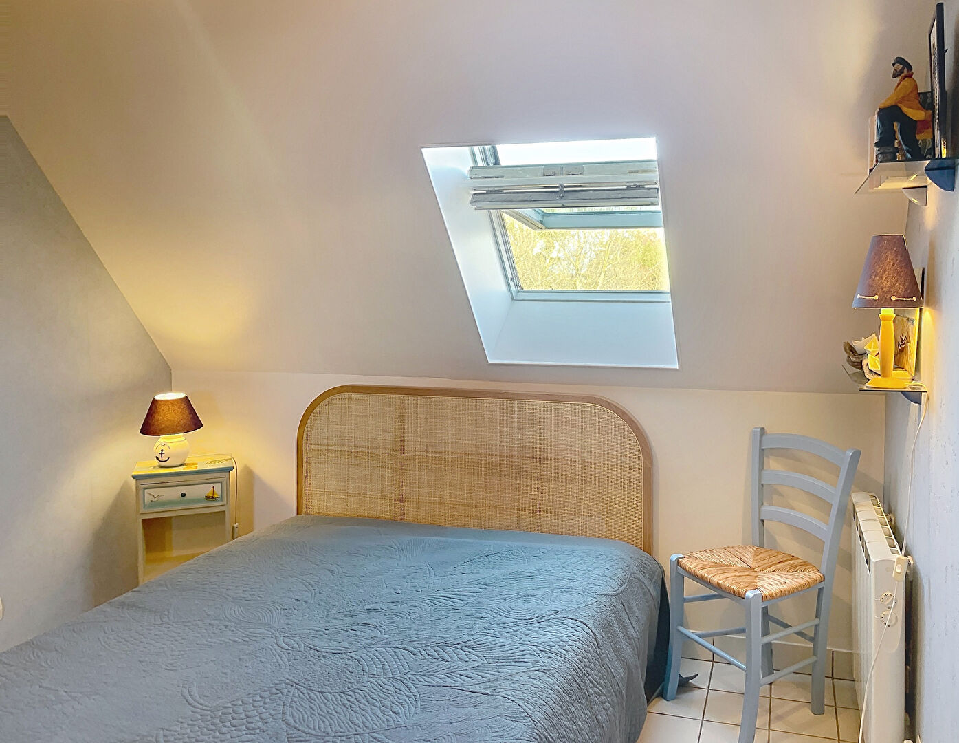 Ce charmant appartement dispose d'un très joli séjour exposé EST de 17,51 m² (19,5 m² au sol avec chambre cabine, d'une cuisine de 2,45 m² qui peut facilement être ouverte sur le salon. La chambre dispose de 7.27 m² (9,26m² au sol). L'appartement dispose d'une salle d'eau et de WC séparés.