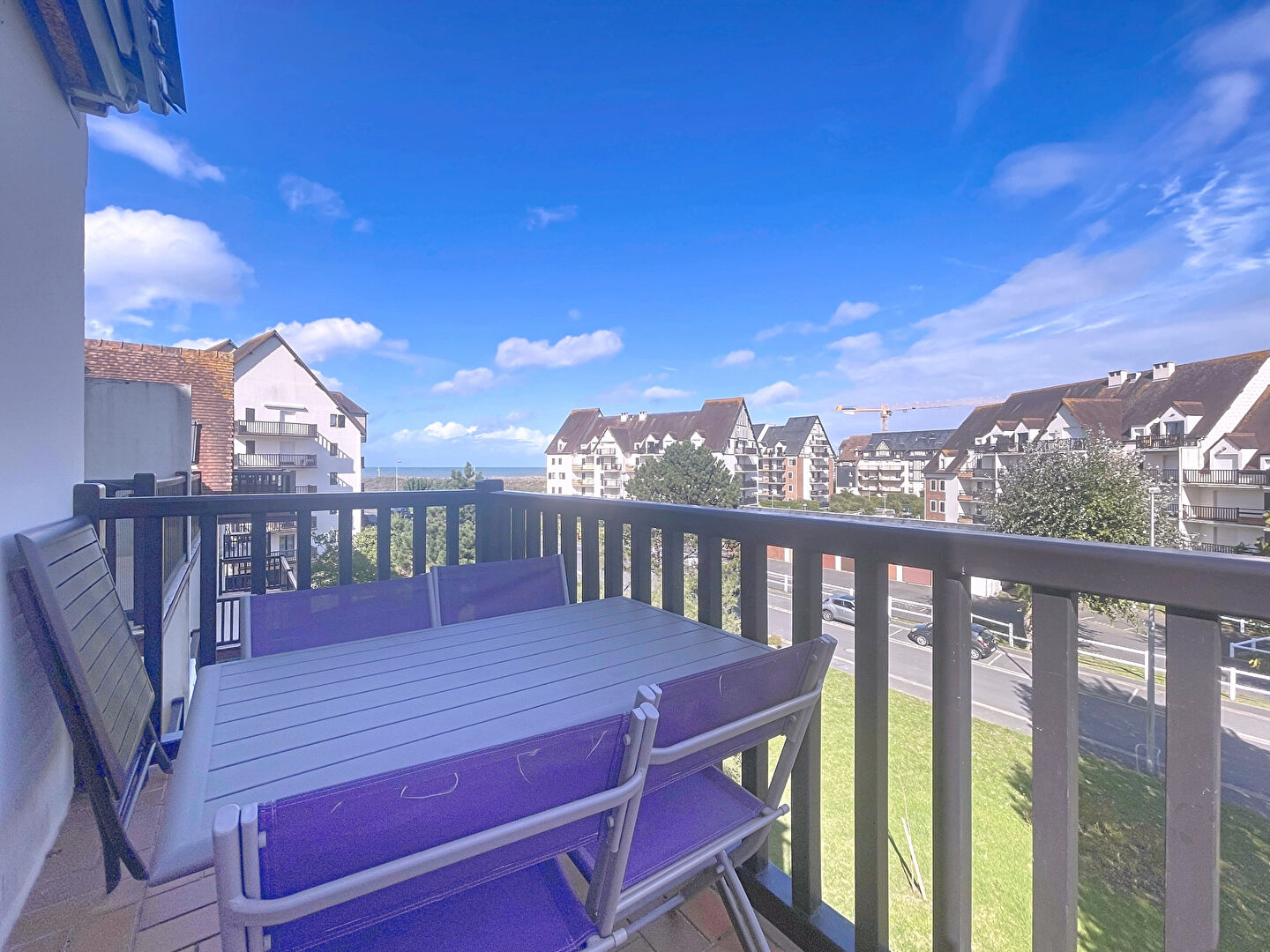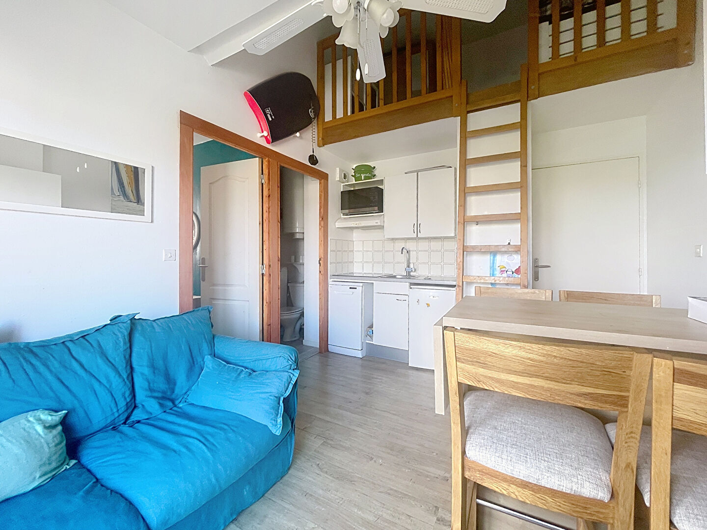 Il profite d'un volume confortable puisque le séjour avec cuisine ouverte s'ouvre sur un balcon d'environ 4 m² exposé Sud-Est avec un aperçu mer, d'une chambre, d'une salle d'eau avec wc et d'une entrée avec placard.