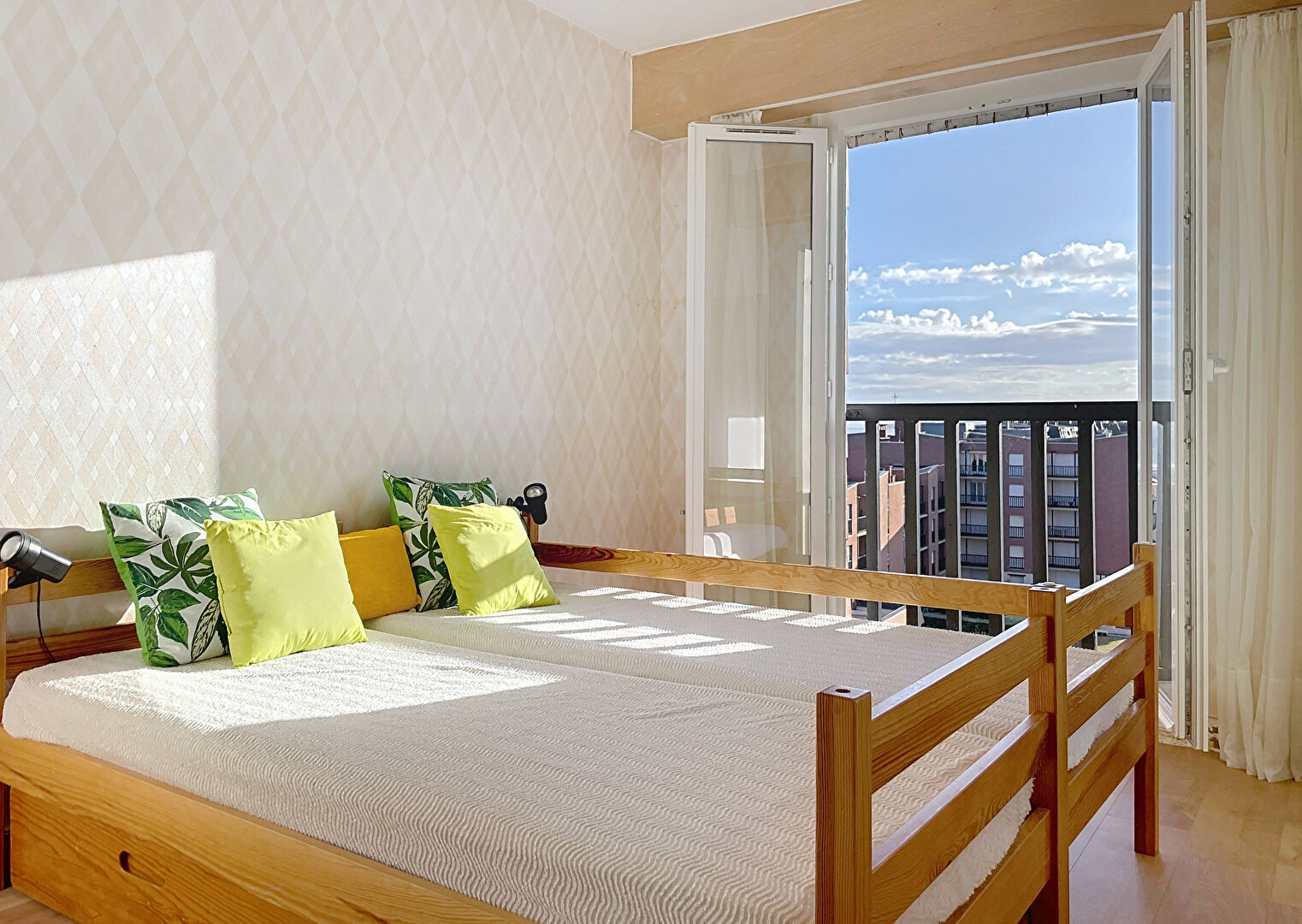 La cuisine, de presque 7m² est indépendante et dispose elle aussi d'un accès balcon. La première chambre de 9,51m², profite de la VUE MER et de l'exposition OUEST. La seconde chambre d'une surface de 9,69m², profite elle aussi de la VUE MER et d'un accès au balcon EST. Même depuis la salle de bain de 3,5m² vous pourrez également observer la mer. WC indépendants.