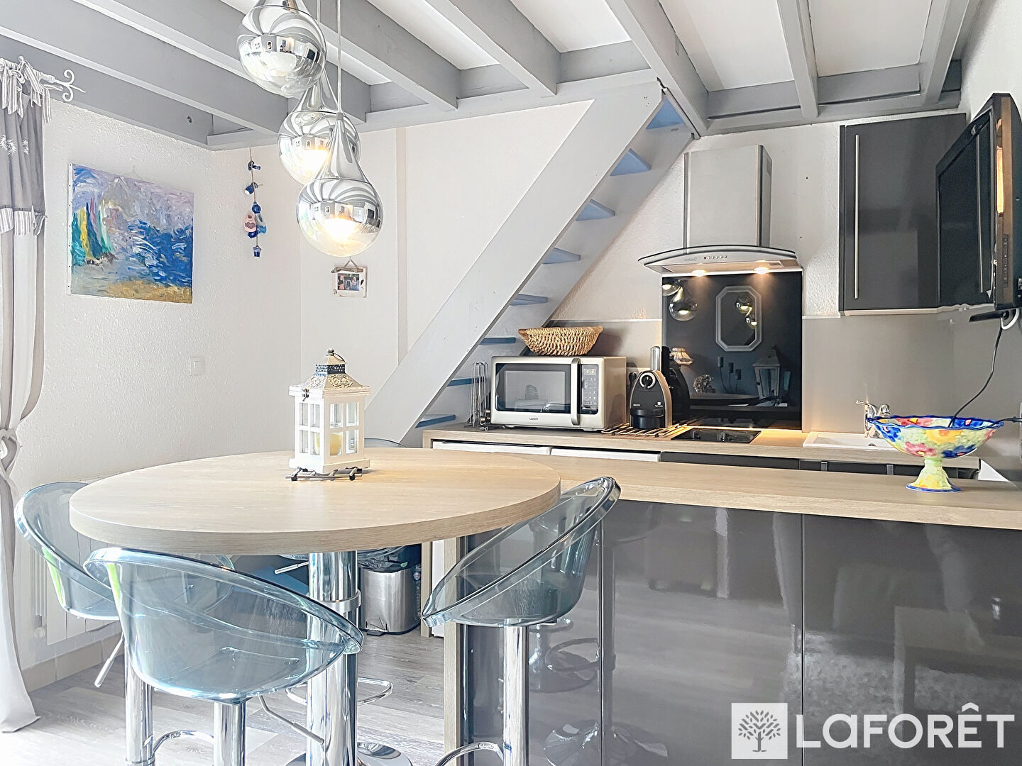En effet, vous disposerez au rez-de-chaussée, d'un salon avec cuisine ouverte équipée d'un plan de travail dinatoire, mais également d'une très belle salle d'eau avec WC. A l'étage, le palier dessert deux chambres très lumineuses. Le jardin accueille une petite terrasse et un cellier. Un stationnement extérieur privatif est proposé avec le bien.