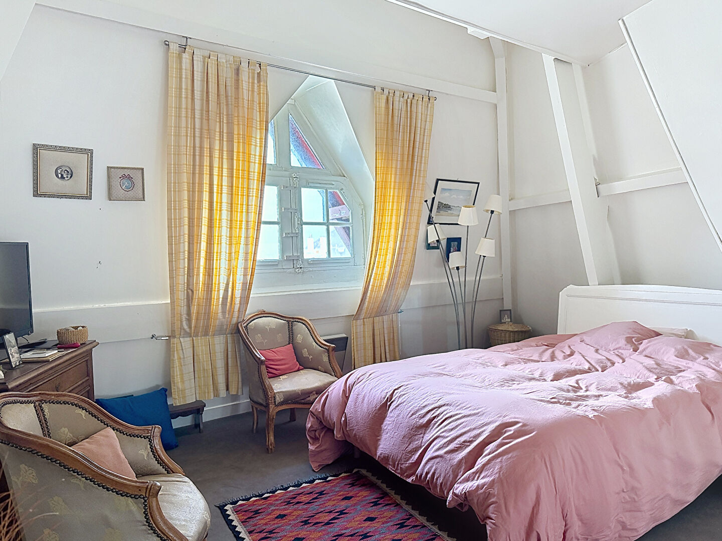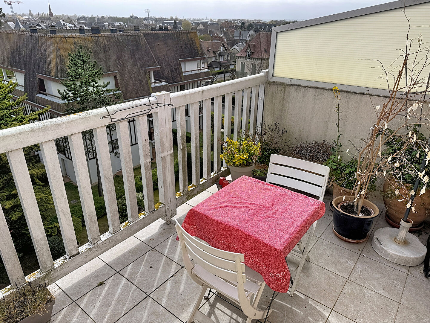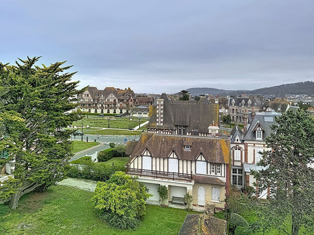 Situé au 4ème et dernier étage d'une résidence sécurisée avec ascenseur, cet appartement atypique et plein de charme bénéficie d'une vue exceptionnelle sur Cabourg, les jardins du casino et un aperçu mer depuis la chambre.