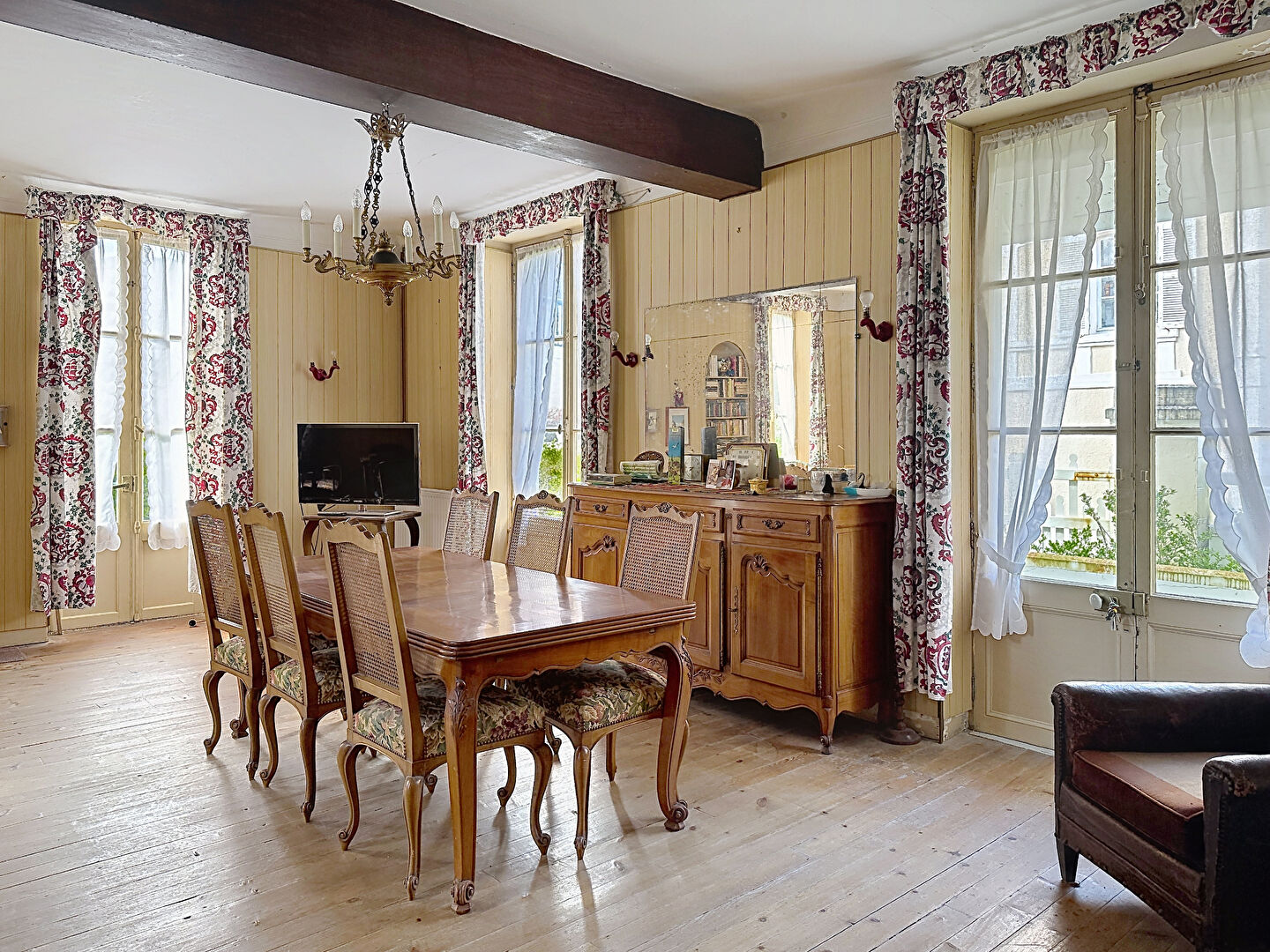 Parquet massif dans le séjour et dans toutes les chambres. Point d'eau dans 4 chambres.