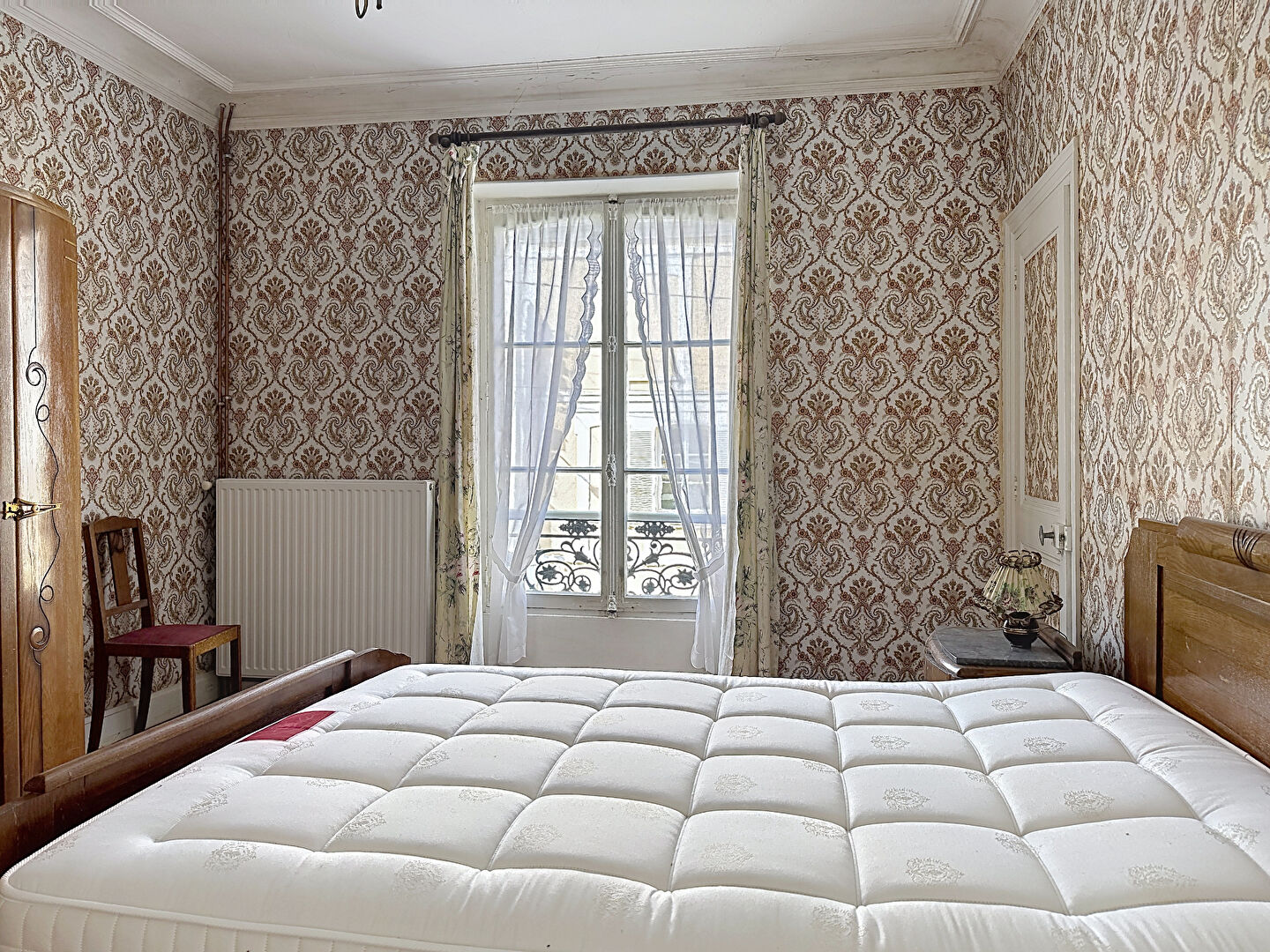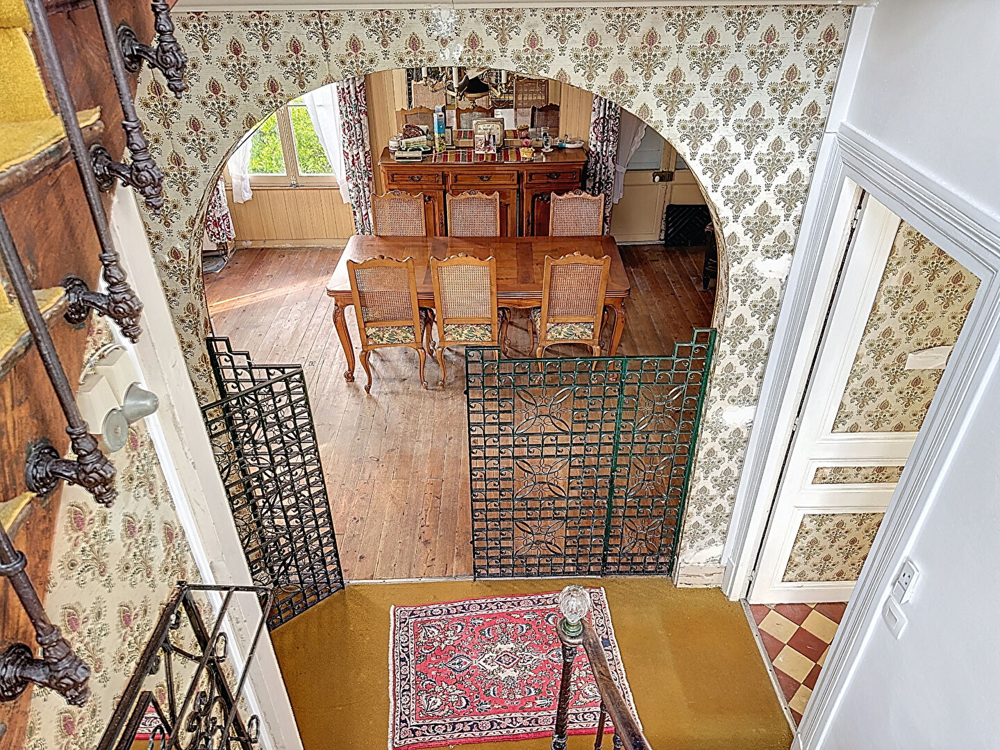 Au 1er étage, un palier dessert deux grandes chambres communicantes dont 1 avec accès direct à la salle de bain et l'autre avec lavabo et bidet, une petite chambre, une salle de bain avec WC
