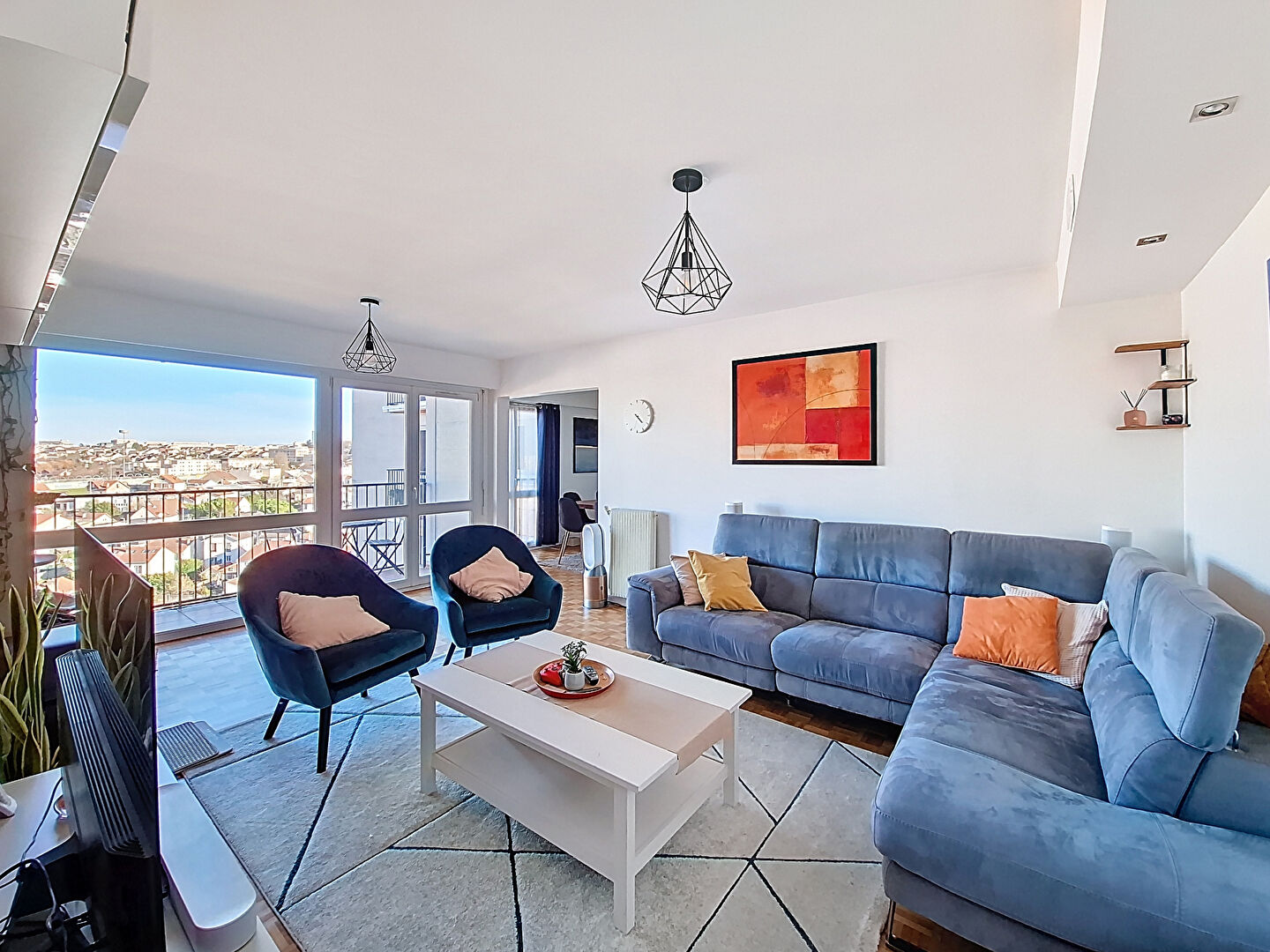 L'agence Laforêt Arcueil Cachan vous présente en exclusivité dans un quartier calme et résidentiel situé à 10 mn à pied du RER B et futur métro ligne 15, proche du centre ville et des écoles, dans une copropriété bien entretenue avec gardien : appartementt 5 pièces de 90m² totalement rénové en excellent état proposant : une entrée avec placards, un double séjour (possibilité chambre supplémentaire) donnant sur un balcon avec belle vue dégagée, trois chambres dont deux avec placards, une cuisine aménagée et équipée, une salle d'eau, un wc séparé, petit coin buanderie et nombreux rangements. Cellier de 4.50m² sur le pallier. Une place de parking privée en sous-sol.