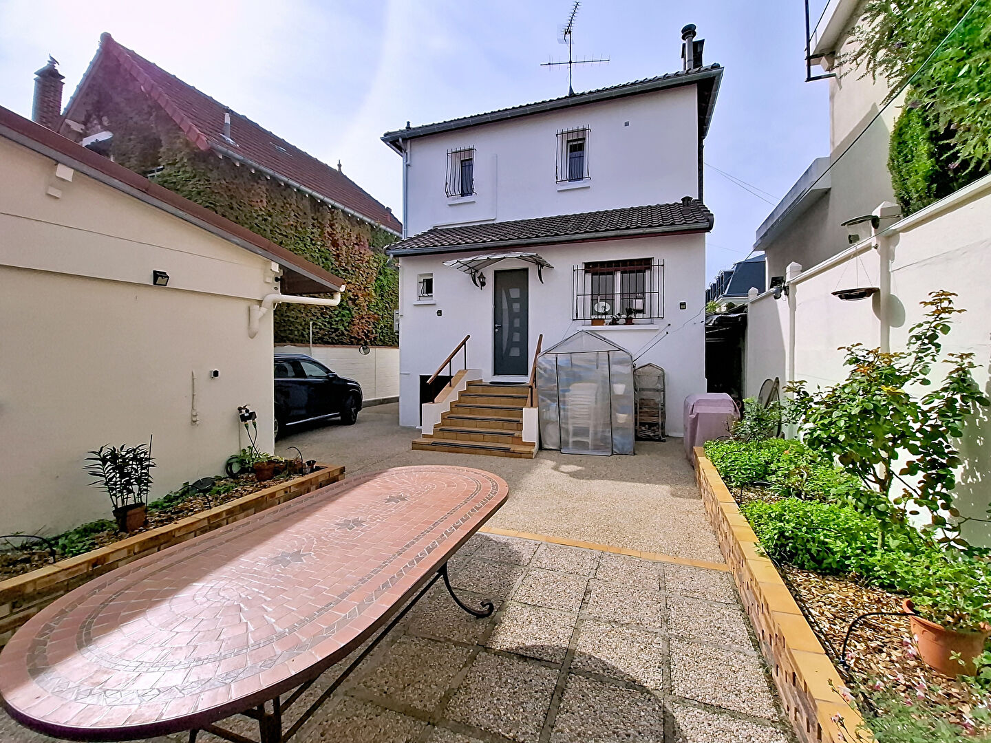 Grande terrasse et possibilité de garer 2 à 3 voitures en extérieur.