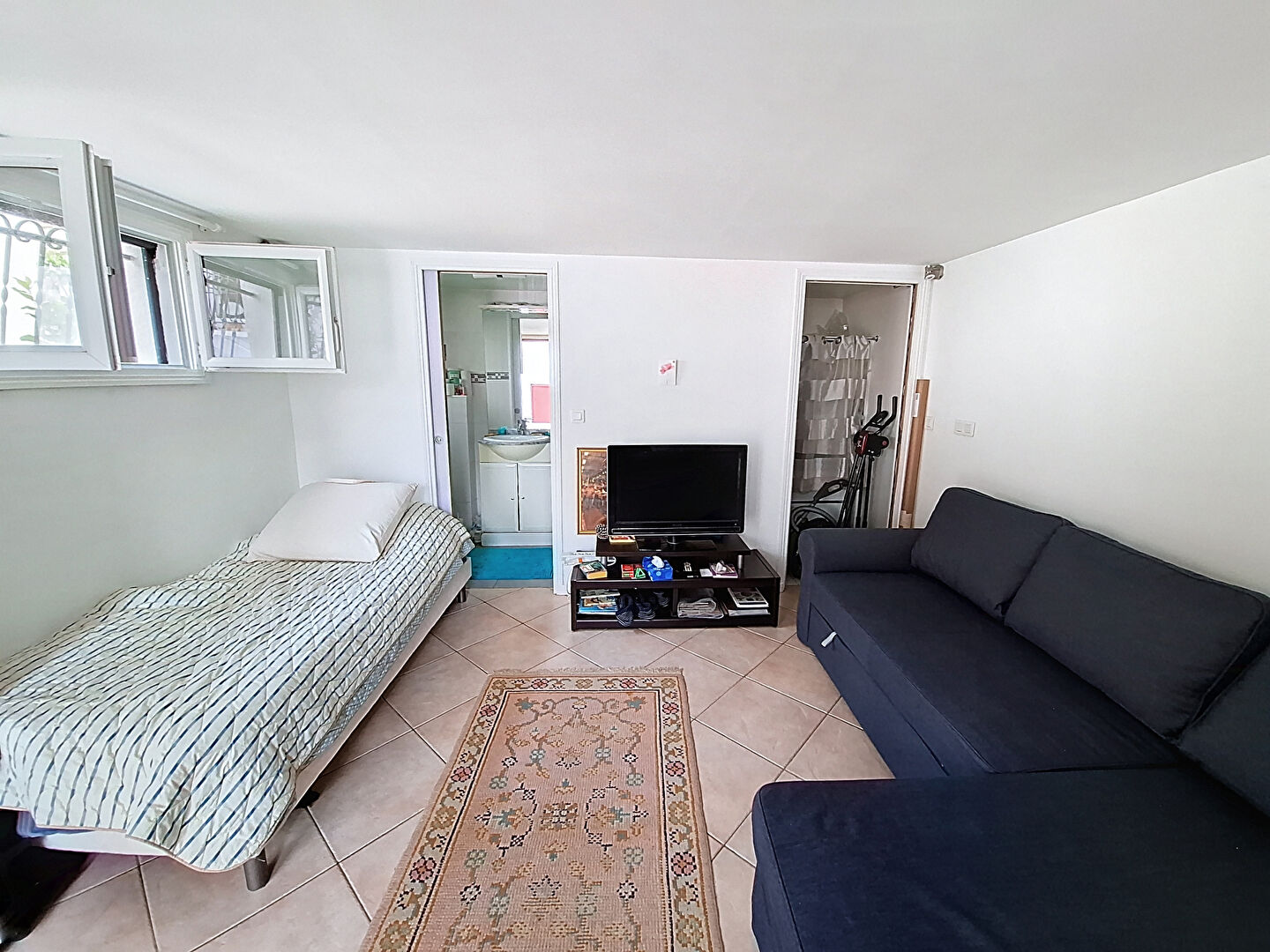 Le studio se compose d'un séjour (chambre) et une salle d'eau avec wc, tour électrique.