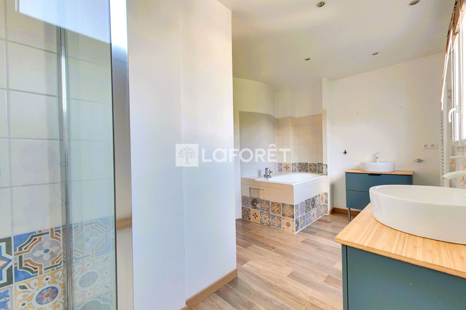Au premier étage vous disposerez d'un belle pièce palière baignée de lumière, une salle de bain composée d'une douche, d'une baignoire, et de 2 meubles vasque, un WC indépendant et deux chambres allant de 9.4 à 14,5m².