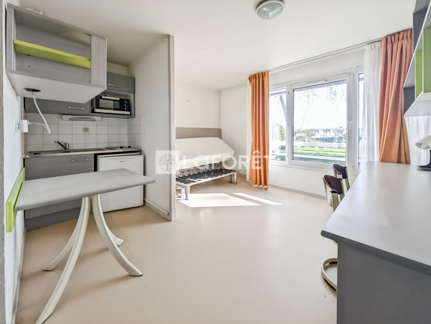 Au 1er étage (sur 2) d'une résidence calme et sécurisée avec gardien, ce studio meublé et libre se compose d'une entrée avec placards, d'une pièce de vie avec kitchenette, ainsi que d'une salle d'eau avec WC.