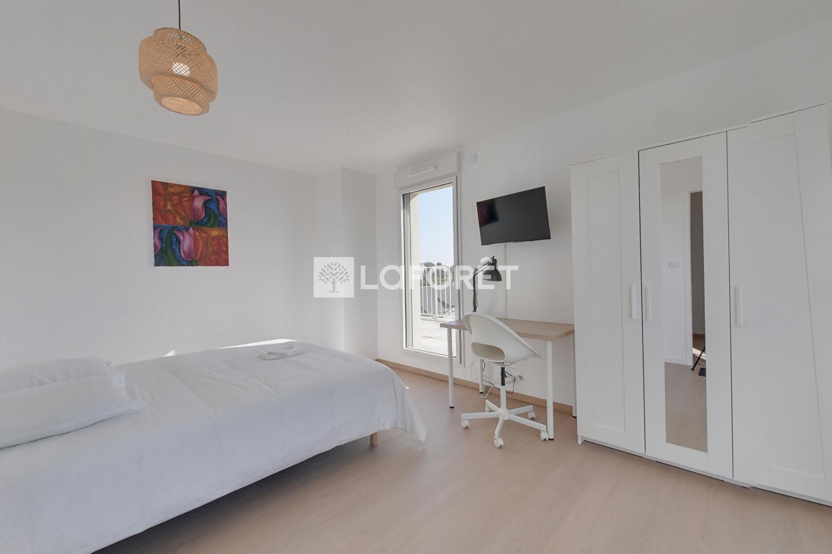 Chaque chambre est meublée avec soin (lit, bureau, rangements, télévision) pour offrir un cadre de vie confortable et fonctionnel.
