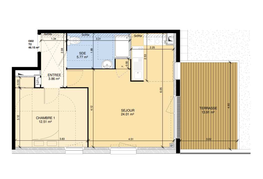 Surface : 46.15 m²