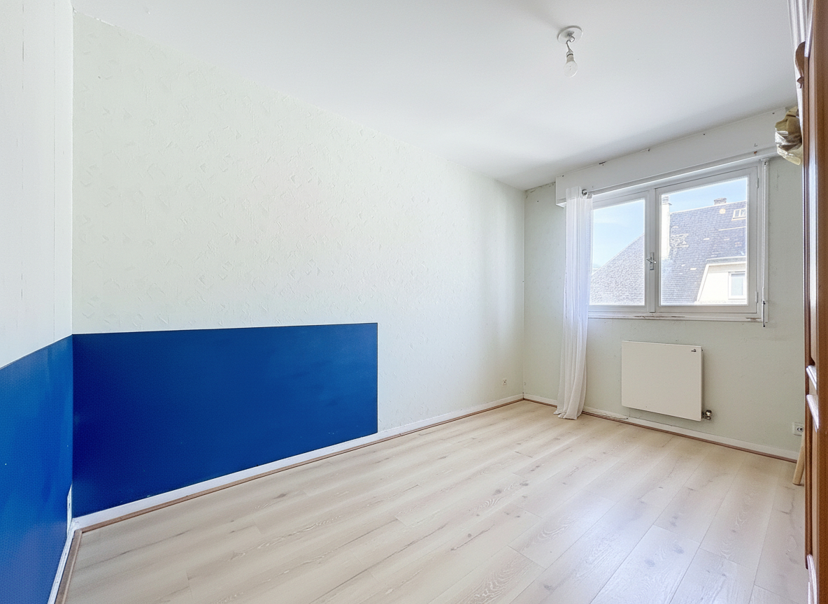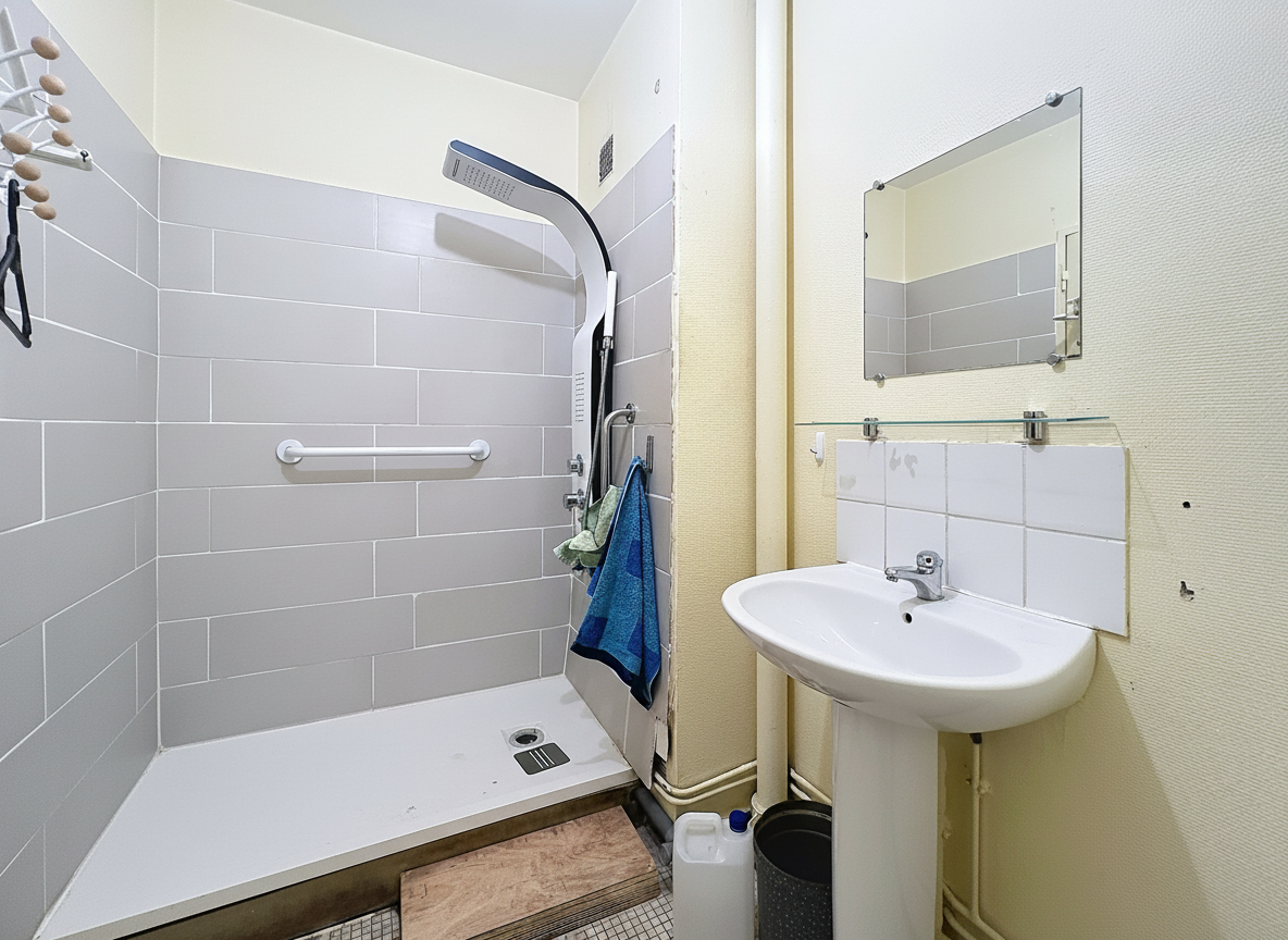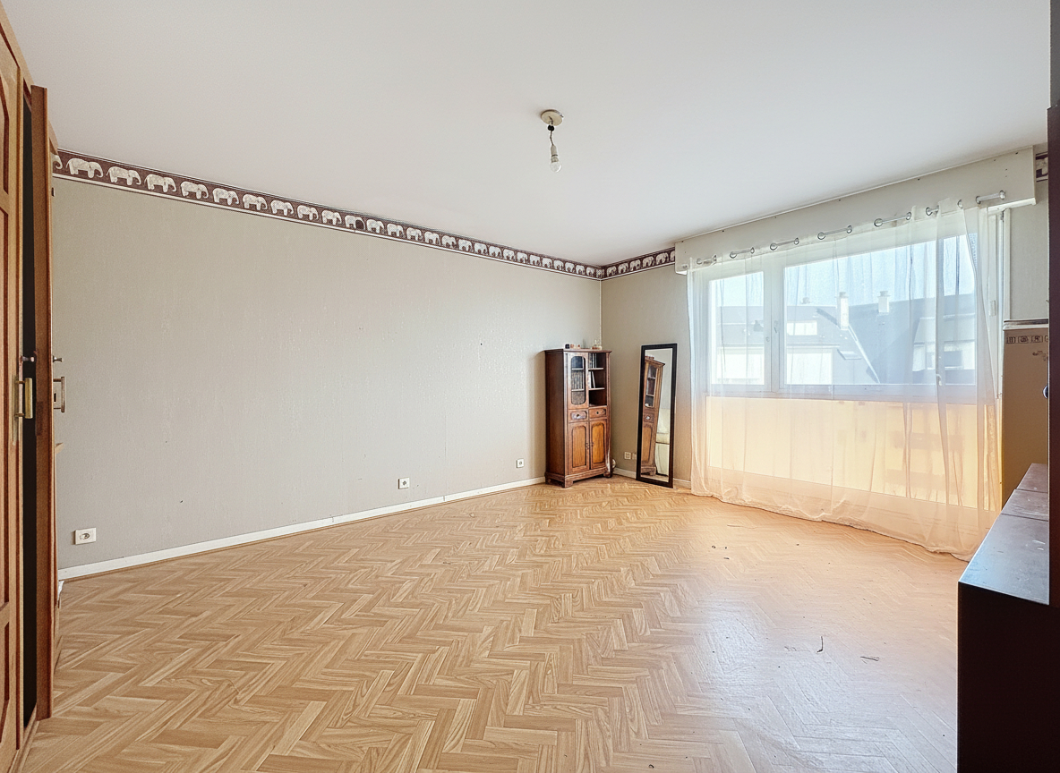 Caen rive droite, à côté du cinéma Lux, station Tram à 2min, appartement à rénover entièrement de 54m2 situé au quatrième étage avec ascenseur, composé d'une entrée, un débarras, une salle d'eau avec wc, une chambre de 12m2, un séjour de 21m2, une cuisine indépendante, et une cave en sous-sol.