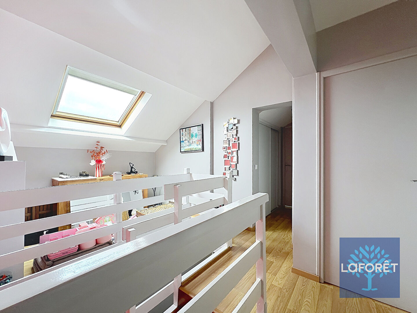 A l'étage, un palier avec coin bureau dessert les quatre chambres, un wc, une salle de bains, et un dressing.