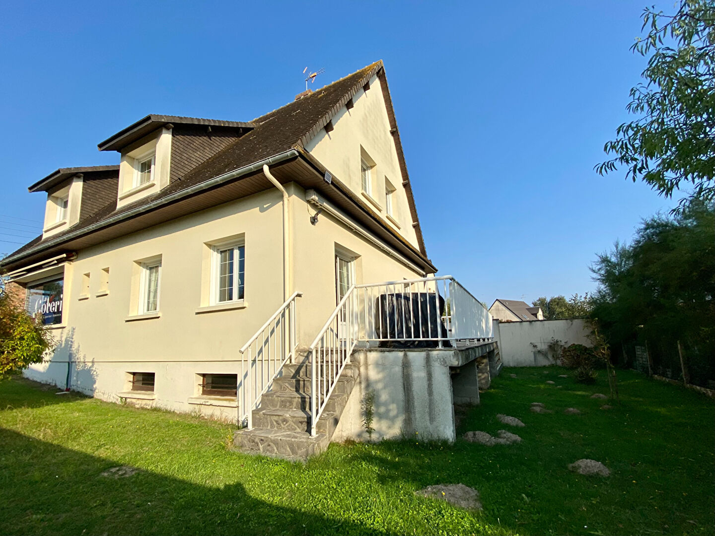 La maison bénéficie d'un séjour de 25 m² , une cuisine séparée avec accès à une terrasse de 30 m² plein sud , un jardin, un salon télé, et à l'étage 4 chambres, 2 salles de bain, 2 W.C et au sous-sol une cave avec laverie.