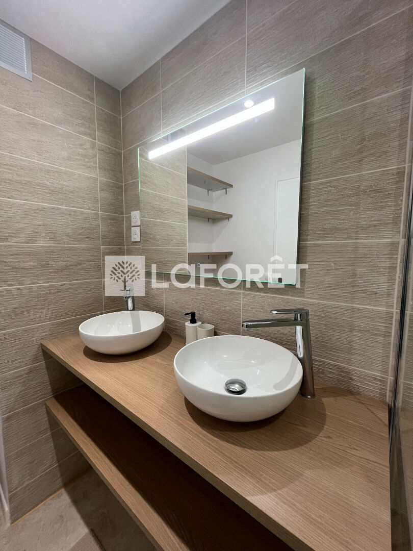 Salle d'eau avec double vasques, WC séparés. Nombreux rangements communs.