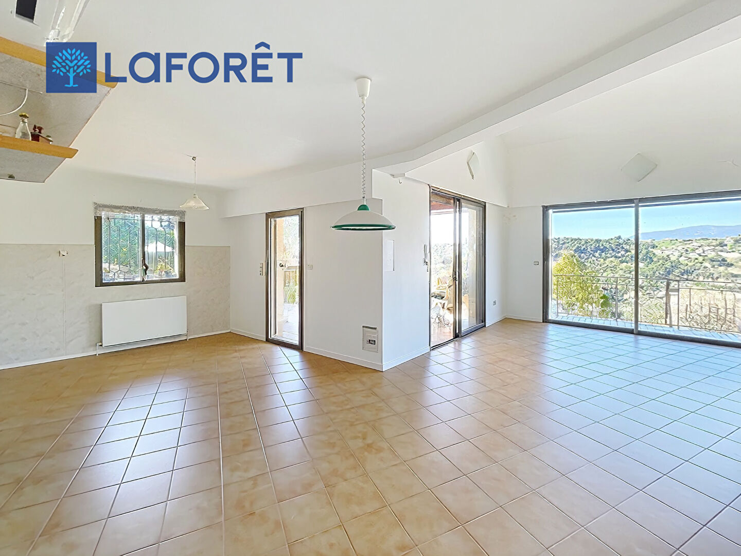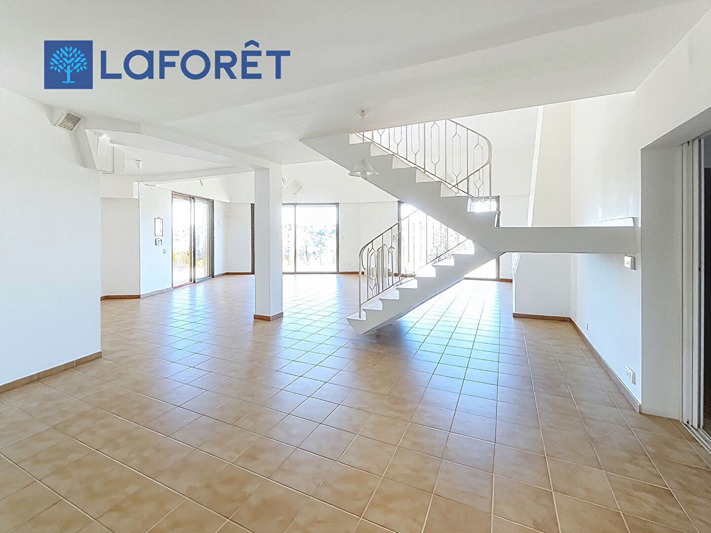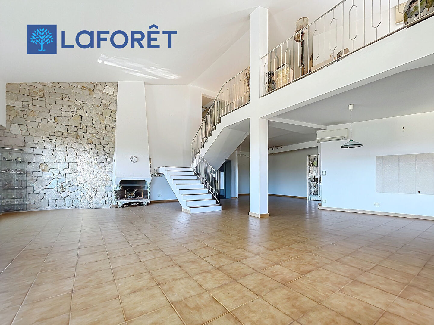 Au niveau inférieur, donnant sur balcon et terrasses, grand séjour cathédrale avec cuisine ouverte d'environ 87 m2, une chambre avec salle de bains et wc, un wc invité, une grande pièce de jeux .