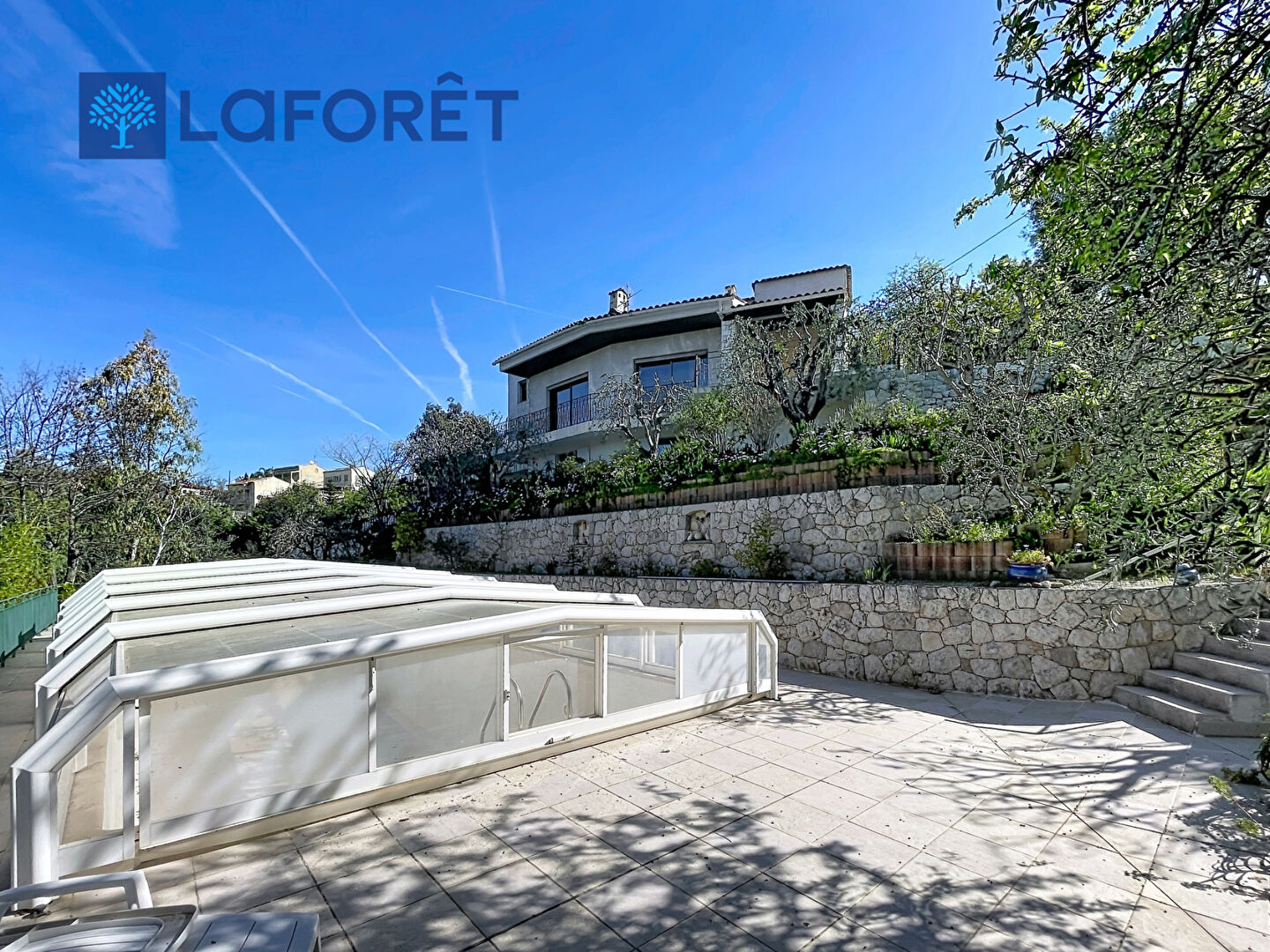 Dans le jardin, vous avez une piscine au chlore couverte de 12 m par 5.5 m avec sa plage de 160 m2, un double abri garage et un autre abri possible pour 3 à 4 voitures supplémentaires. Le jardin comprend des oliviers centenaires, des arbres fruitiers...
