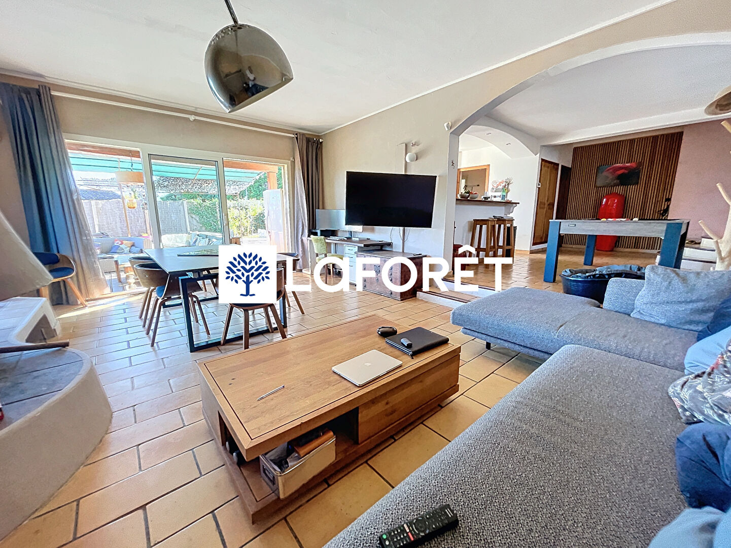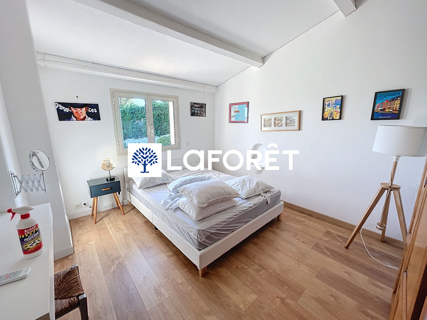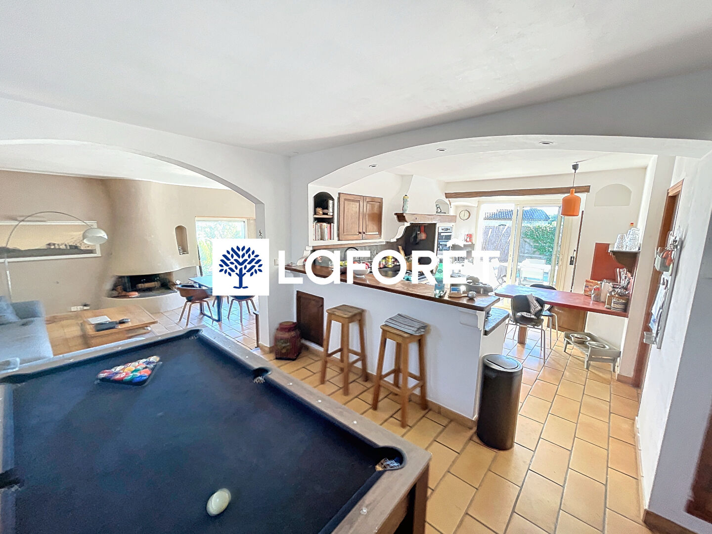 Celle ci se compose : Un séjour avec cheminée donnant sur terrasse couverte très agréable, une cuisine ouverte sur salle à manger, une buanderie , un wc invités. A l'origine vous aviez également une chambre et une salle d'eau avec wc au même niveau , mais cela a été réuni avec le garage pour en faire un deux pièces indépendant très cosi et fonctionnel. ( Bien évidemment la réouverture pour l'accès est très facile à faire)