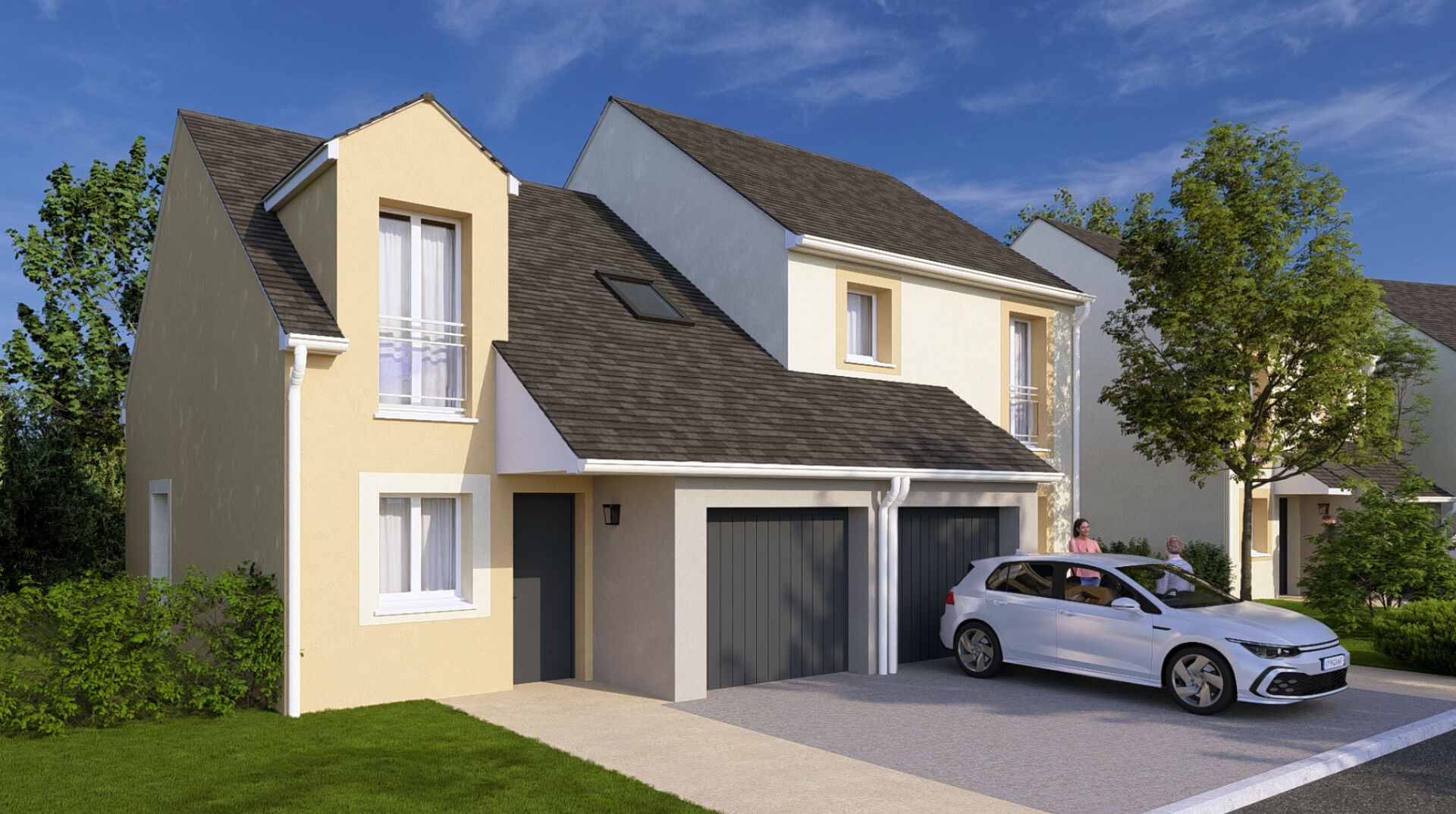 Maison T4 de 80m² avec 3 chambres, garage et parking avec jardin clos.