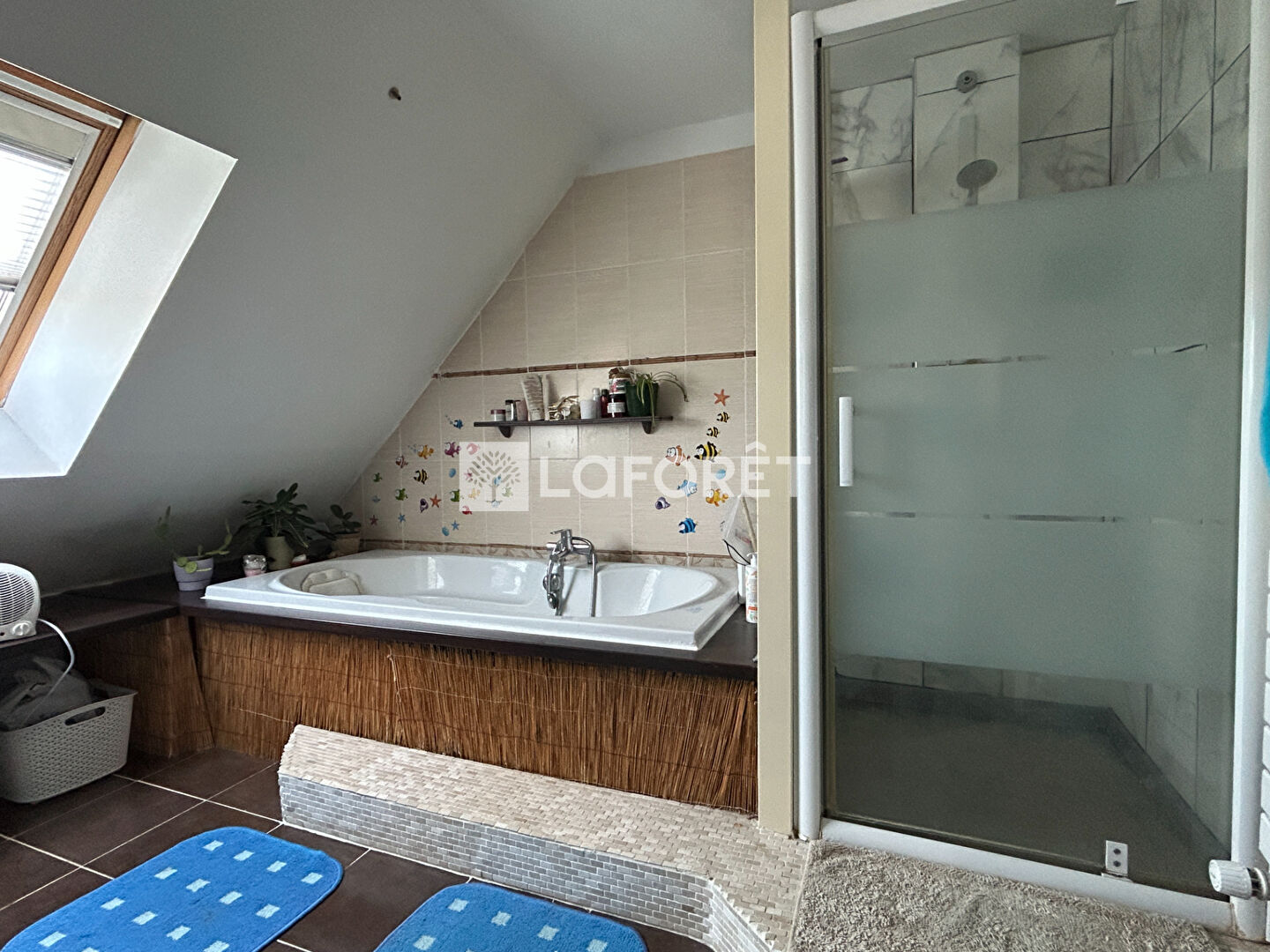 Une configuration familiale et fonctionnelle La maison dispose de quatre chambres, dont une de plain-pied avec salle d'eau privative pour un confort au quotidien. À l'étage, une pièce palière dessert les autres chambres ainsi qu'une salle de bains complète équipée d'une douche et d'une baignoire. Pour plus de commodité, chaque niveau dispose d'un WC indépendant.