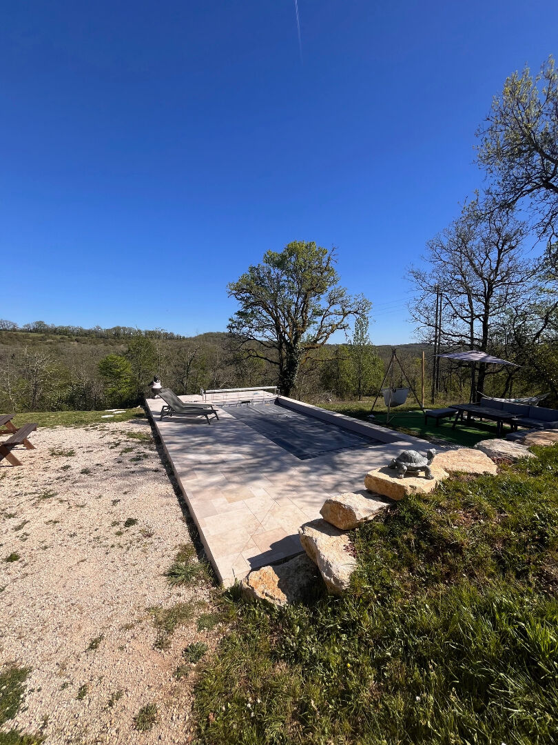 Une piscine neuve de 7X3 avec sa plage vu sur la vallée.
