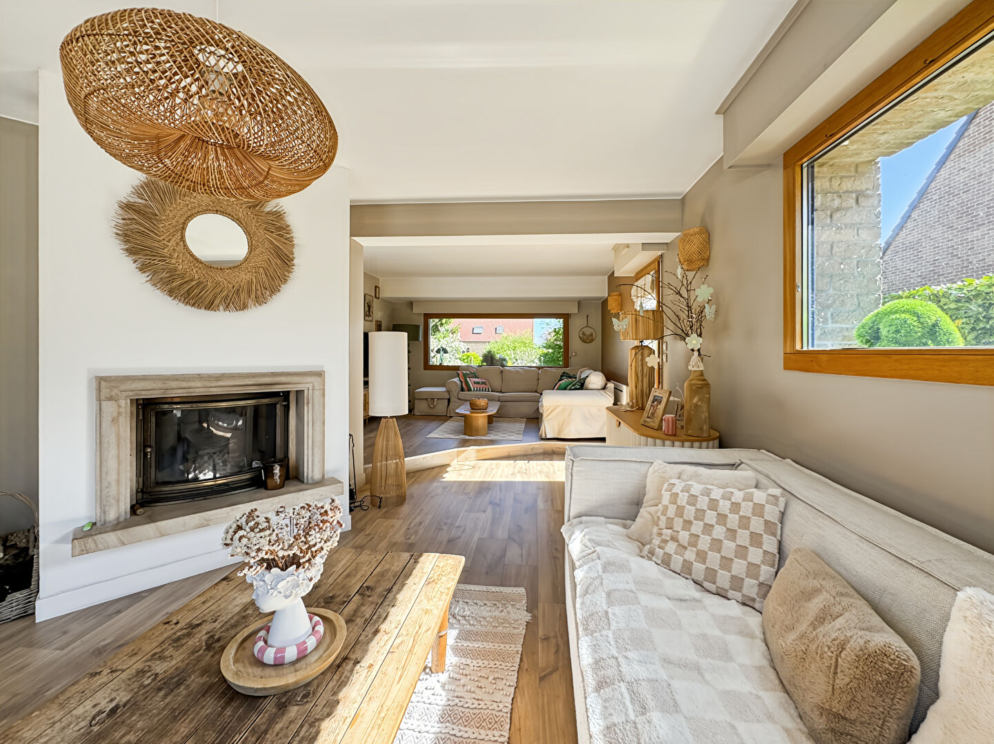 - Un vaste séjour de 45 m², baigné de lumière, avec cheminée feu de bois