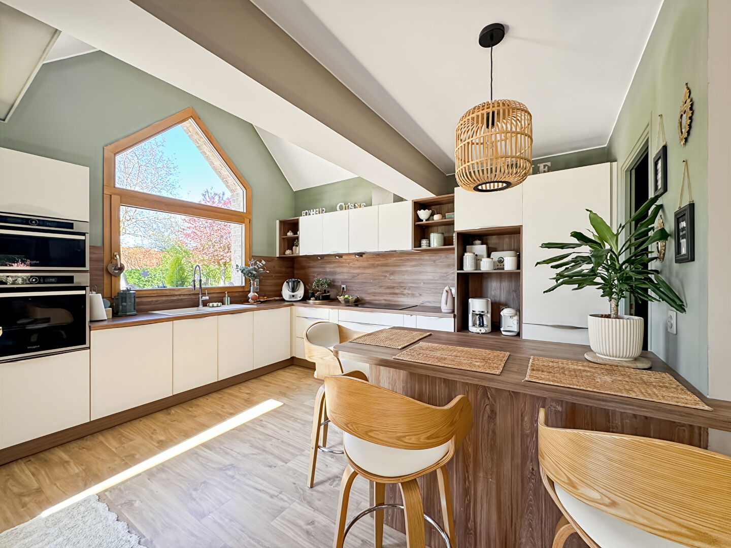 - Une grande cuisine contemporaine, aménagée et entièrement équipée