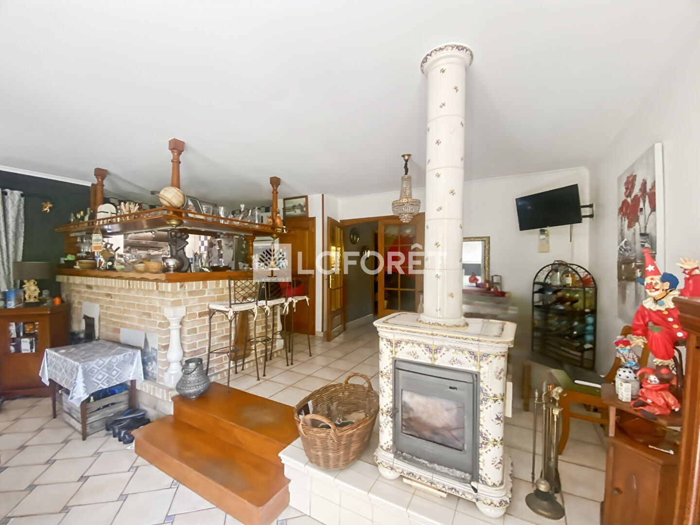 La maison offre une surface généreuse avec une pièce de vie lumineuse de plus de 52 m², comprenant un salon équipé d'un poêle à granulés et une salle à manger, ouverte sur un espace convivial avec une grande cuisine aménagée et équipée, dotée d'un bar ainsi que d'une belle cheminée.