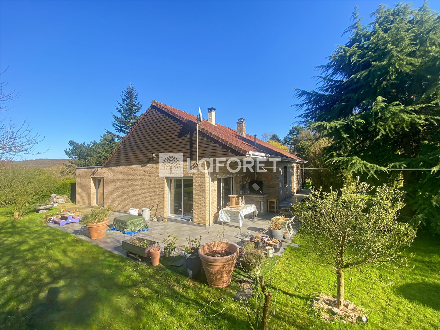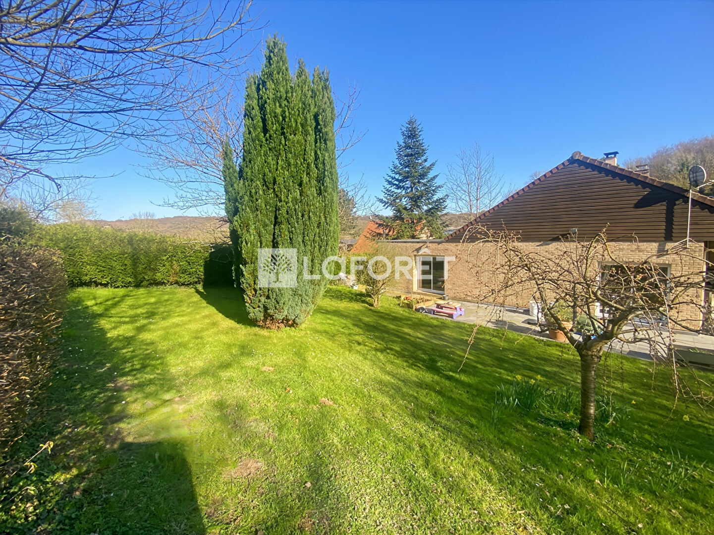 À l'extérieur, vous profiterez d'un terrain agréable, bien exposé et arboré, parfait pour les moments de détente en famille.