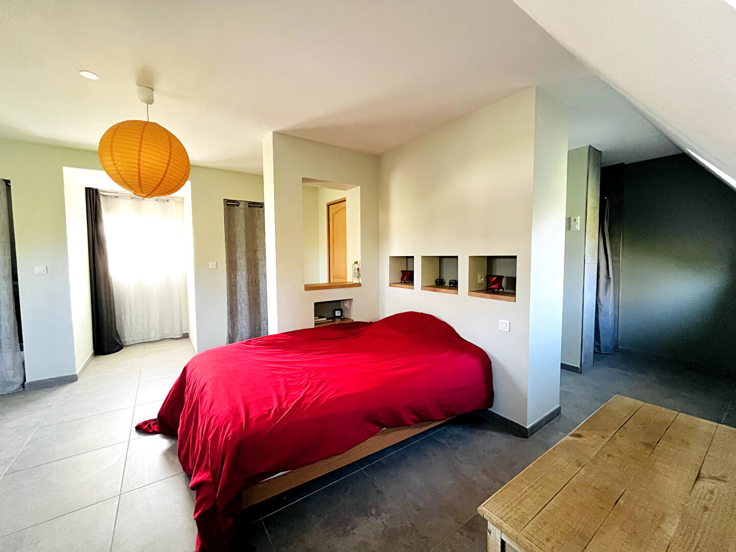 Située au coeur d'un magnifique paysage rural, cette maison de campagne offre un cadre de vie paisible et relaxant. Ce semi plain-pied doté de 5 chambres dont une suite parentale avec salle d'eau, 2 salles d'eau indépendantes, et une cuisine entièrement équipée, cette propriété est parfaite pour une famille cherchant à s'établir dans un environnement calme à 5 minutes des accès autoroutiers.