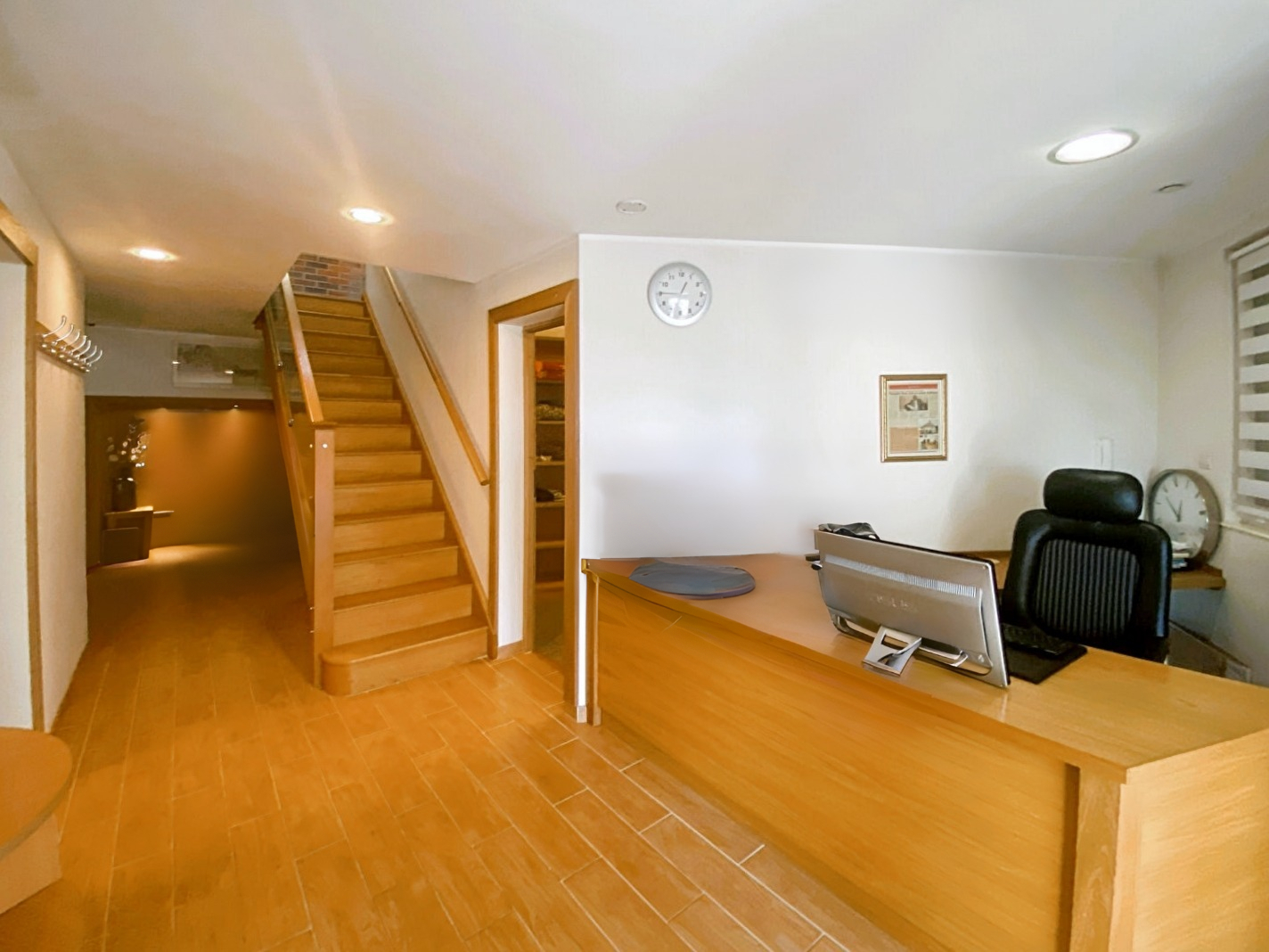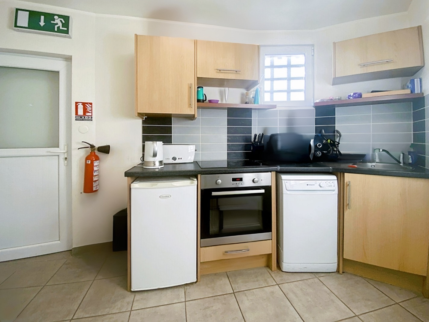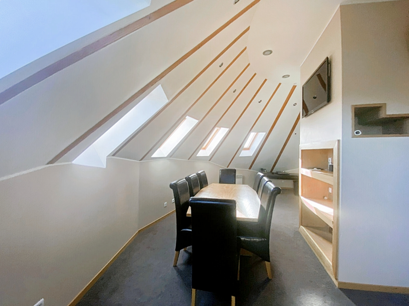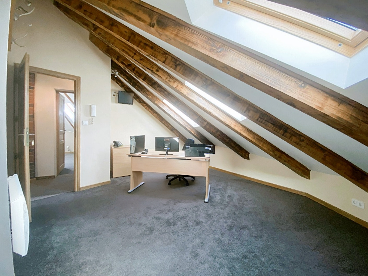 Cet ensemble commercial sur 300 m² dispose de plusieurs bureaux, d'espaces de repas et de salles de réunion sans oublié son grand parking pouvant accueillir des poids lourds.