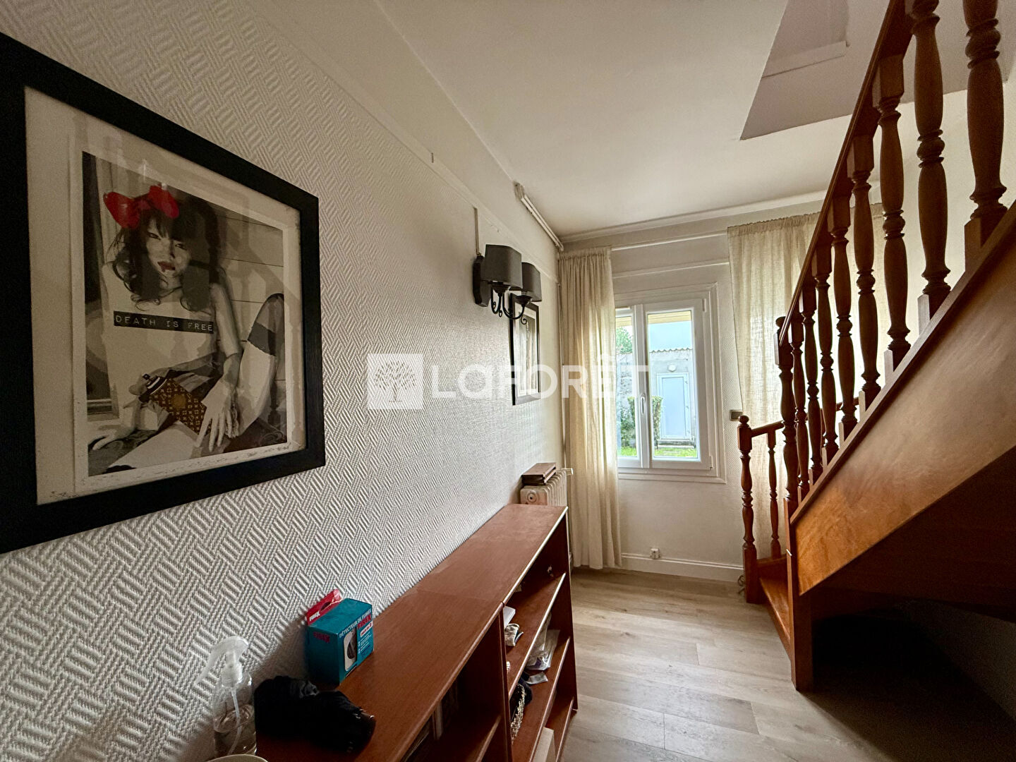 Il se compose, au rez-de-chaussée, d'un double séjour, d'une cuisine séparée, aménagée et équipée, avec un accès direct au jardin privatif. Vous y trouverez également une salle d'eau, des WC indépendants et un dégagement permettant l'accès à l'étage.
