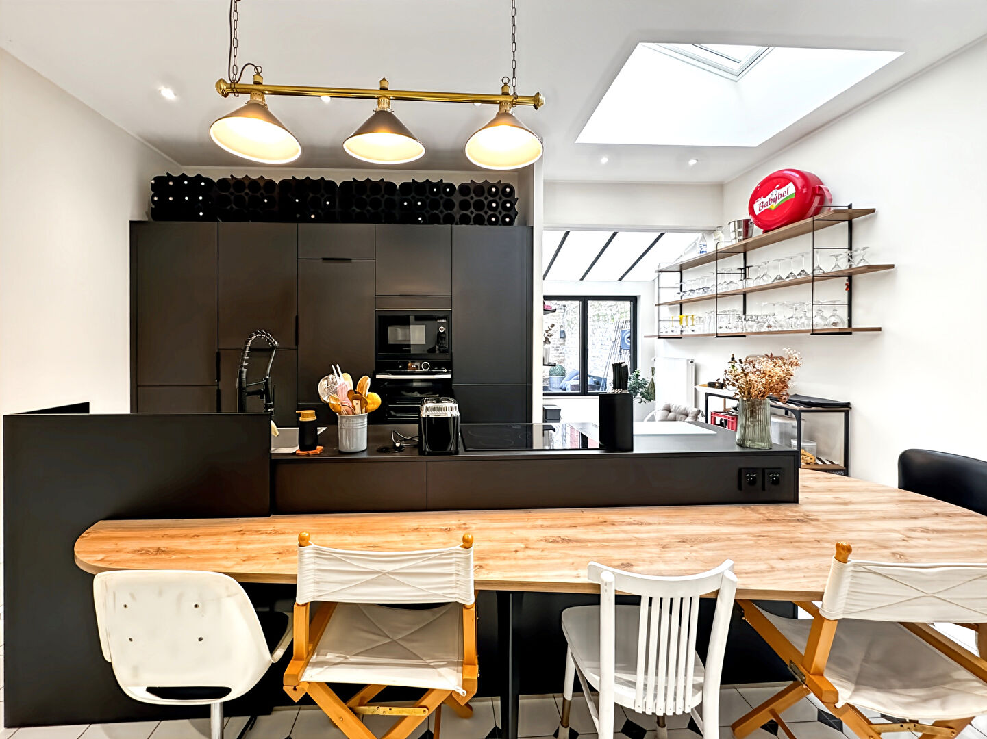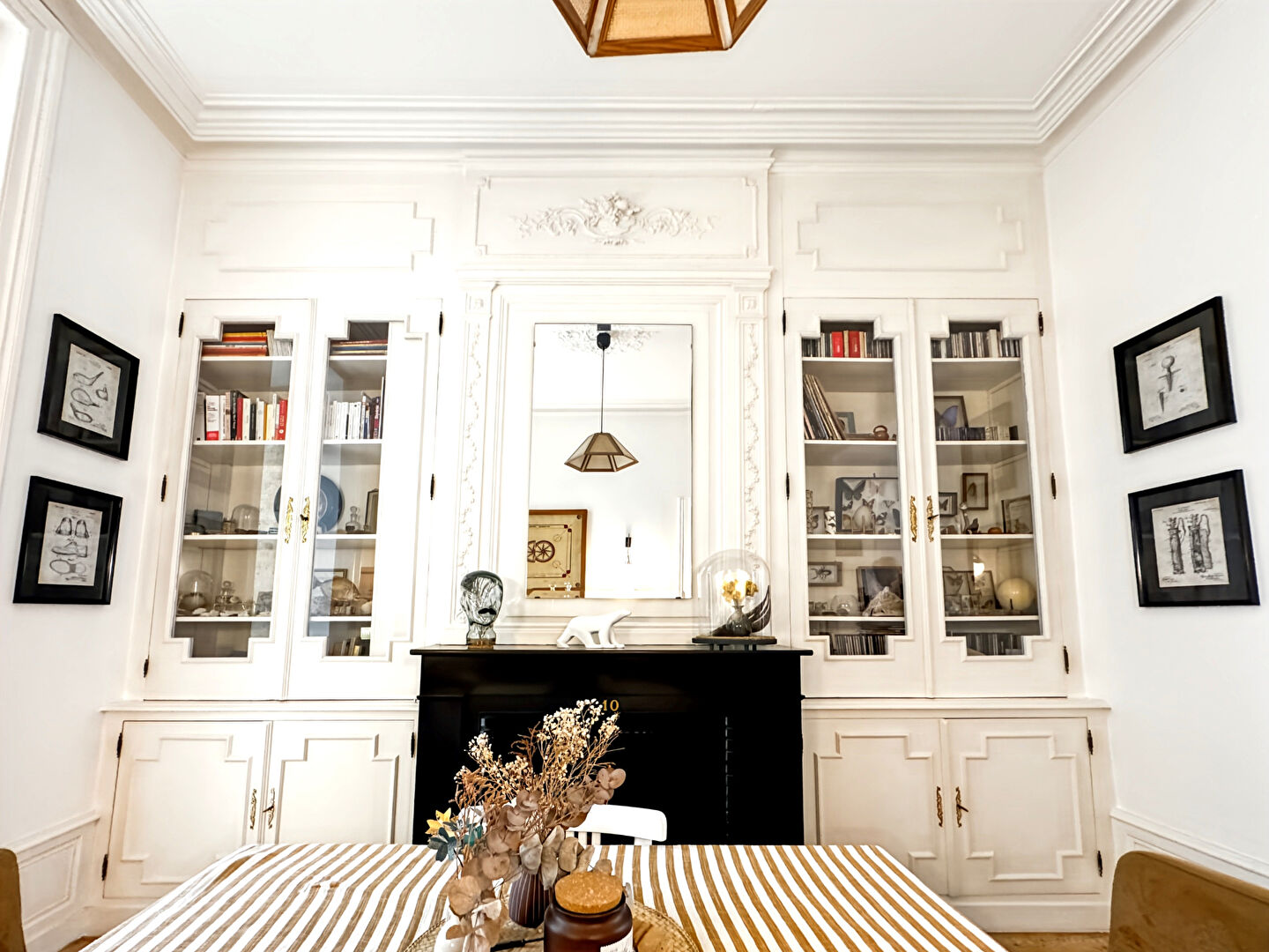 Dès l'entrée, son carrelage à damier d'époque vous emmène au salon-salle à manger où la hauteur sous plafond apporte volume et luminosité et vous emmène du côté cour, où la spacieuse cuisine aménagée et équipée est le coeur de la vie quotidienne.