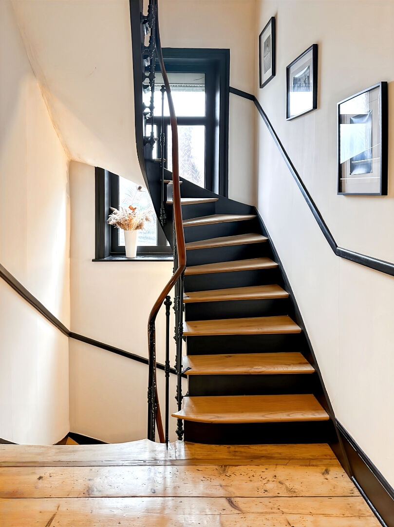 L'élégant escalier conduit à la partie nuit composée au premier étage de deux chambres dont la chambre parentale avec salle d'eau privative et au second de deux chambres supplémentaires ainsi qu'une salle de bain et un WC indépendant.