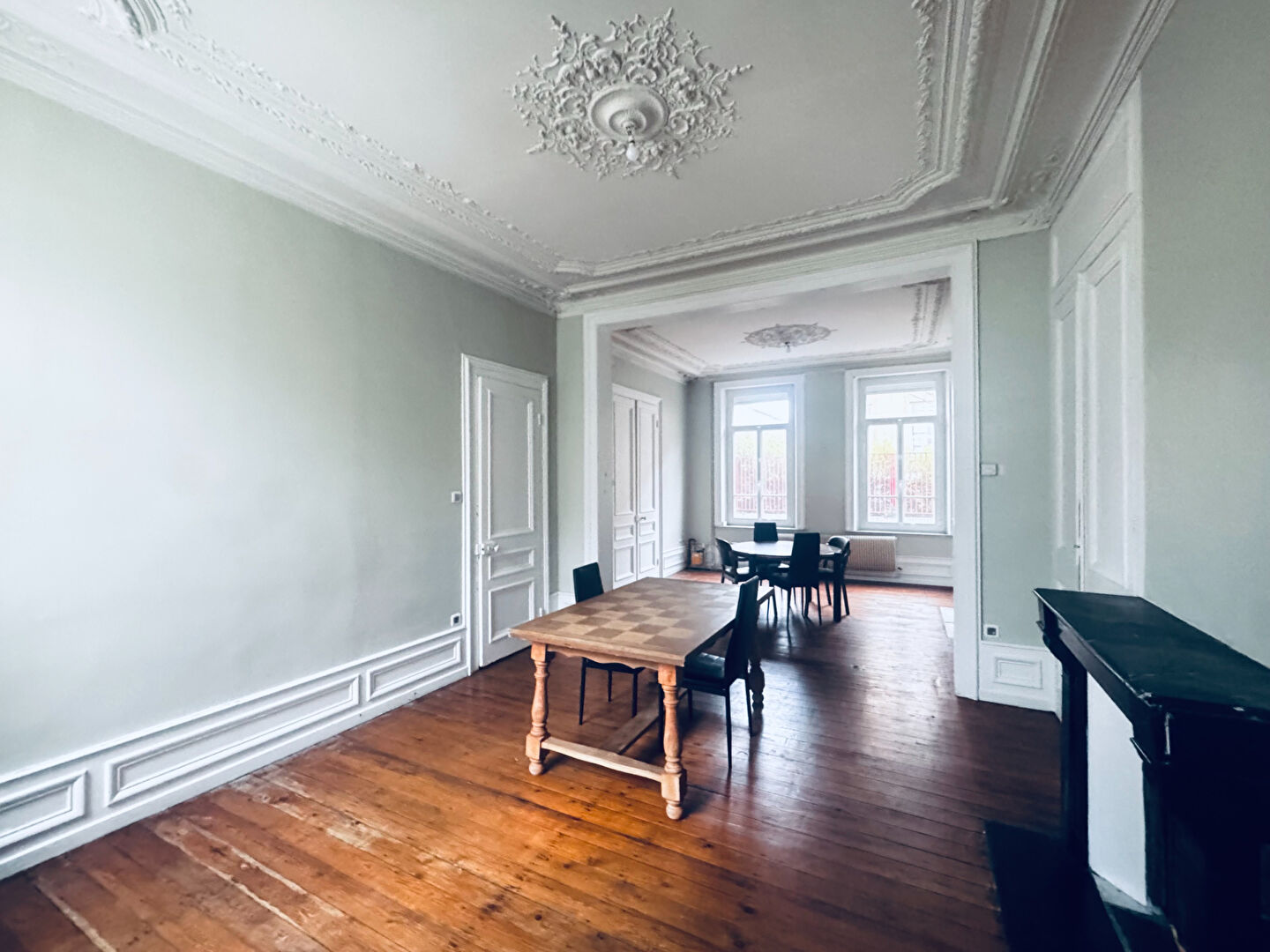 Dès l'entrée vous serez sous le charme , double séjour avec hauteur sous plafond, cuisine aménagée équipée, wc, arrière-cuisine, buanderie.