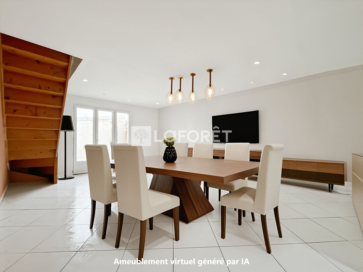 - Au rez-de-chaussée : un séjour lumineux avec cuisine ouverte, ainsi qu'un WC indépendant.