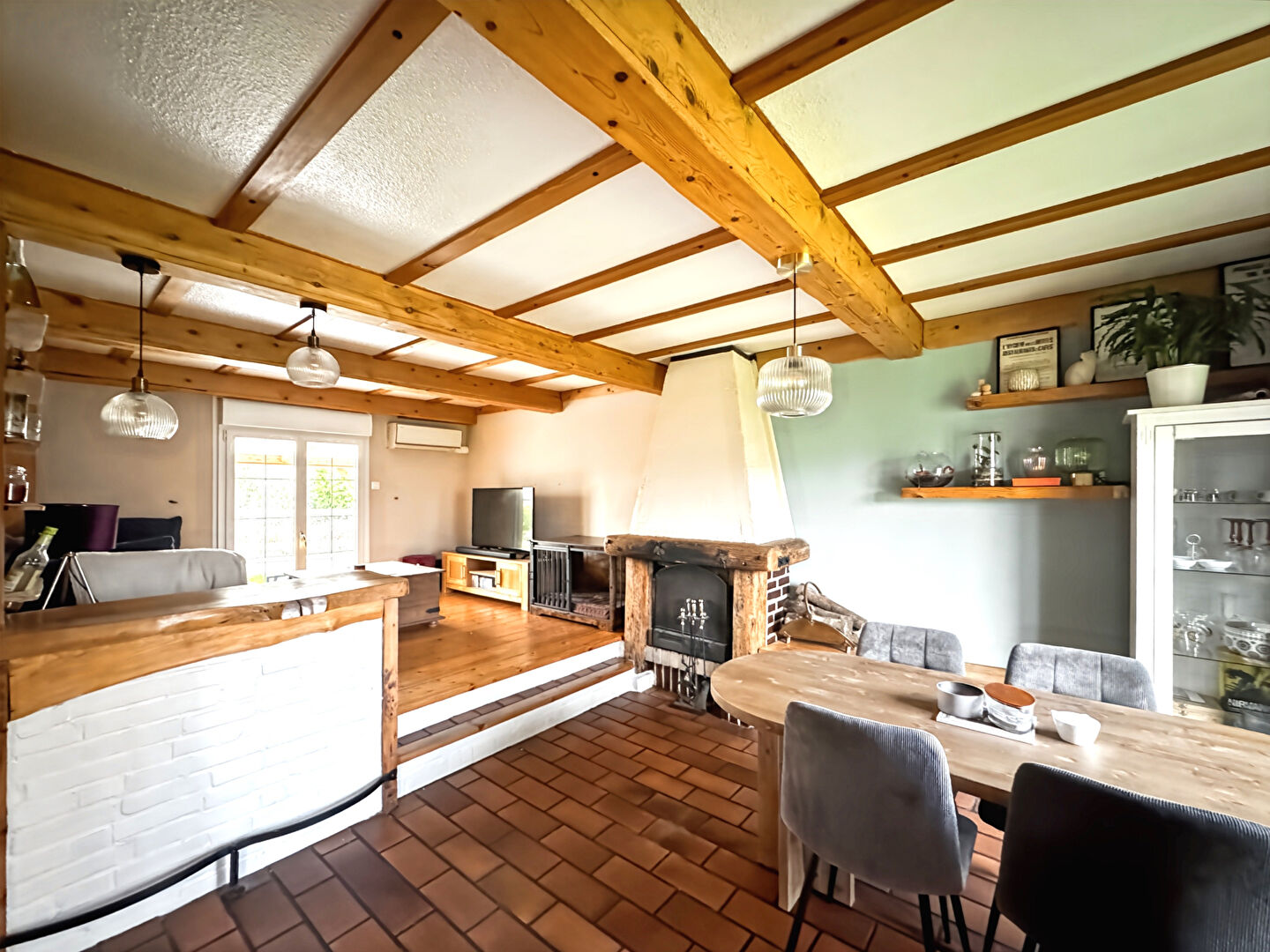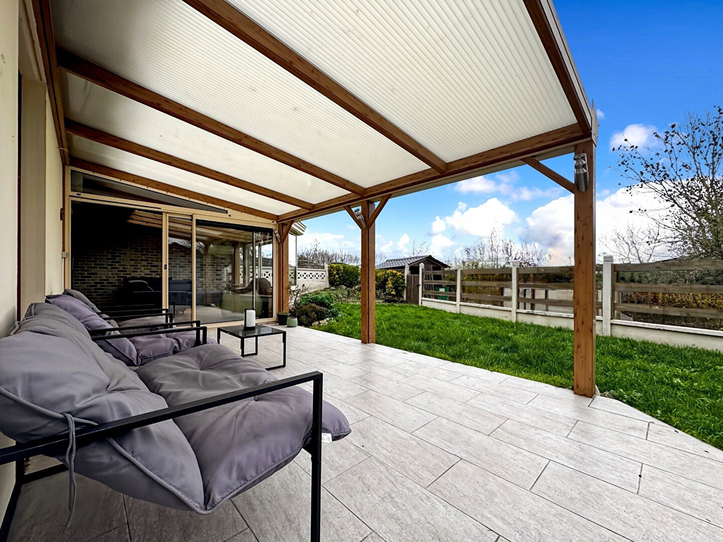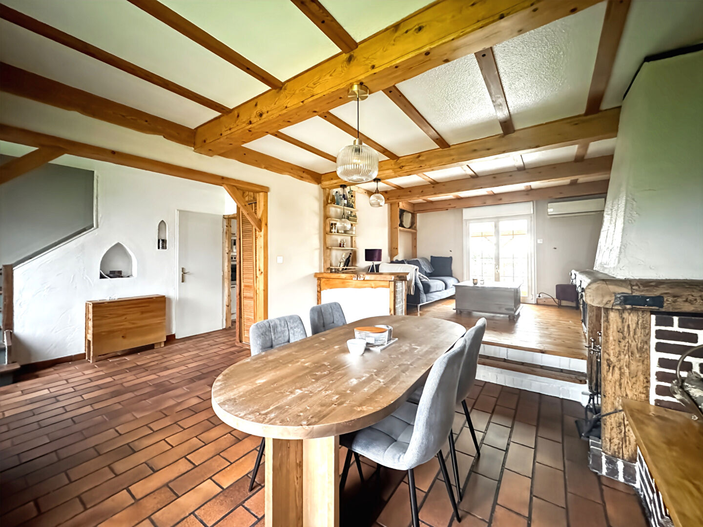 Au rez-de-chaussée, une vaste entrée dessert le séjour double avec cheminée ainsi que la cuisine aménagée et équipée ouverte sur la véranda chauffée.