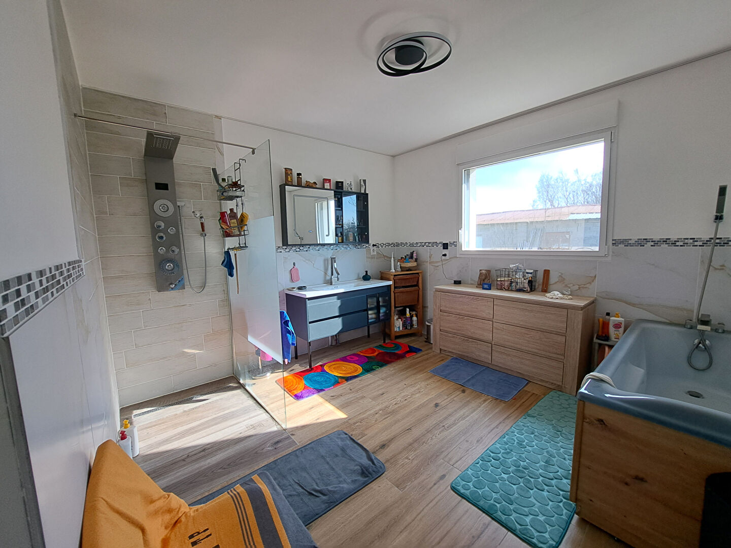 Sur 935m², pavillon individuel de plain pied de 2024, cuisine ouverte sur un vaste salon/séjour, 3 belles chambres, une grande salle de bains, cellier, garage, chauffage pompe à chaleur.