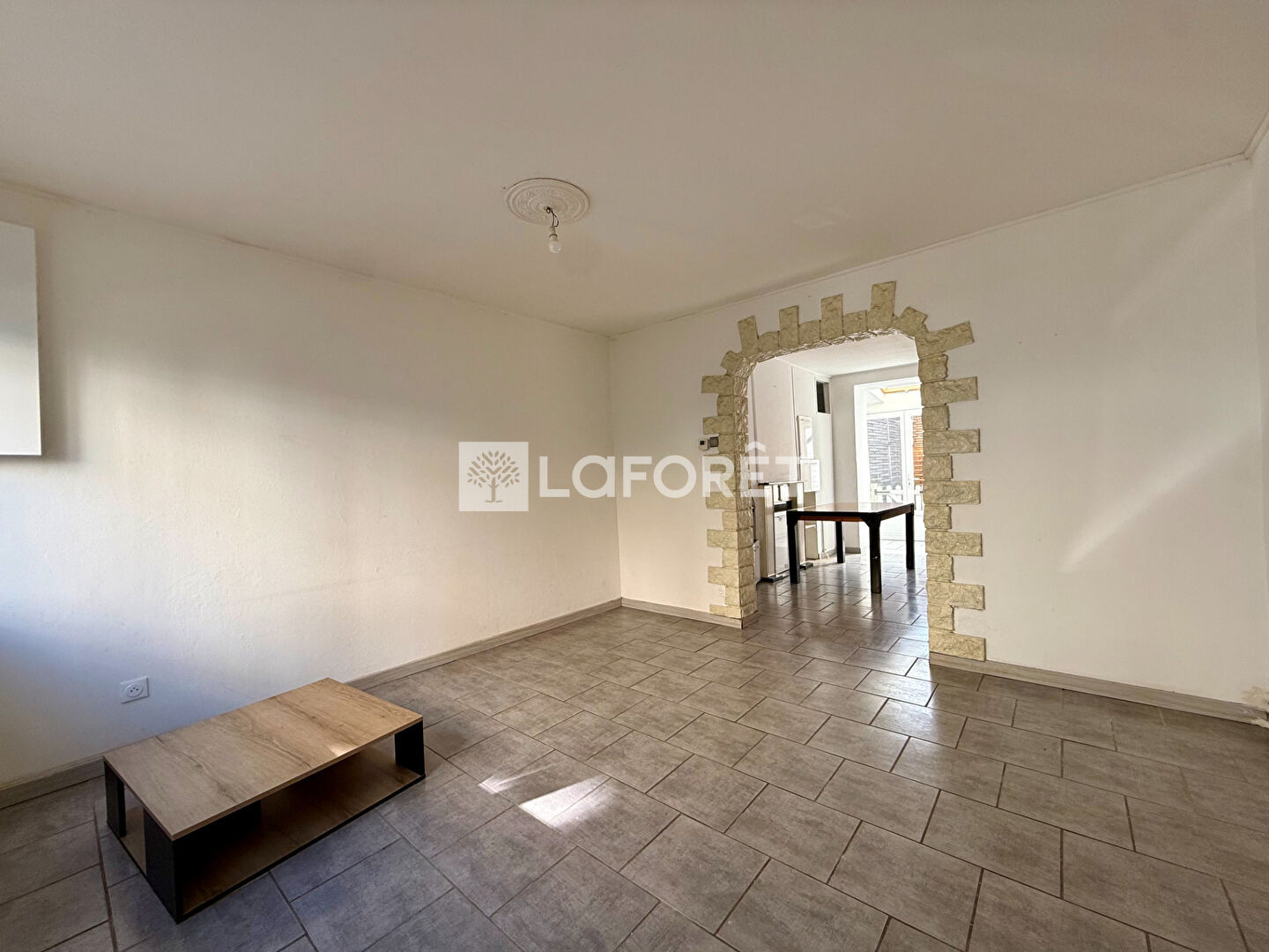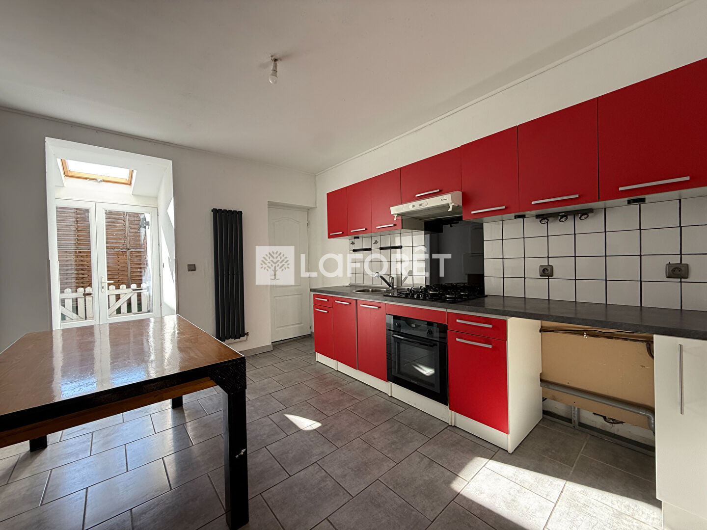 Maison composée au rez-de-chaussée d'un séjour, une cuisine ouverte aménagée et équipée ( évier, four, plaque de cuisson, hotte), une salle d'eau avec wc.