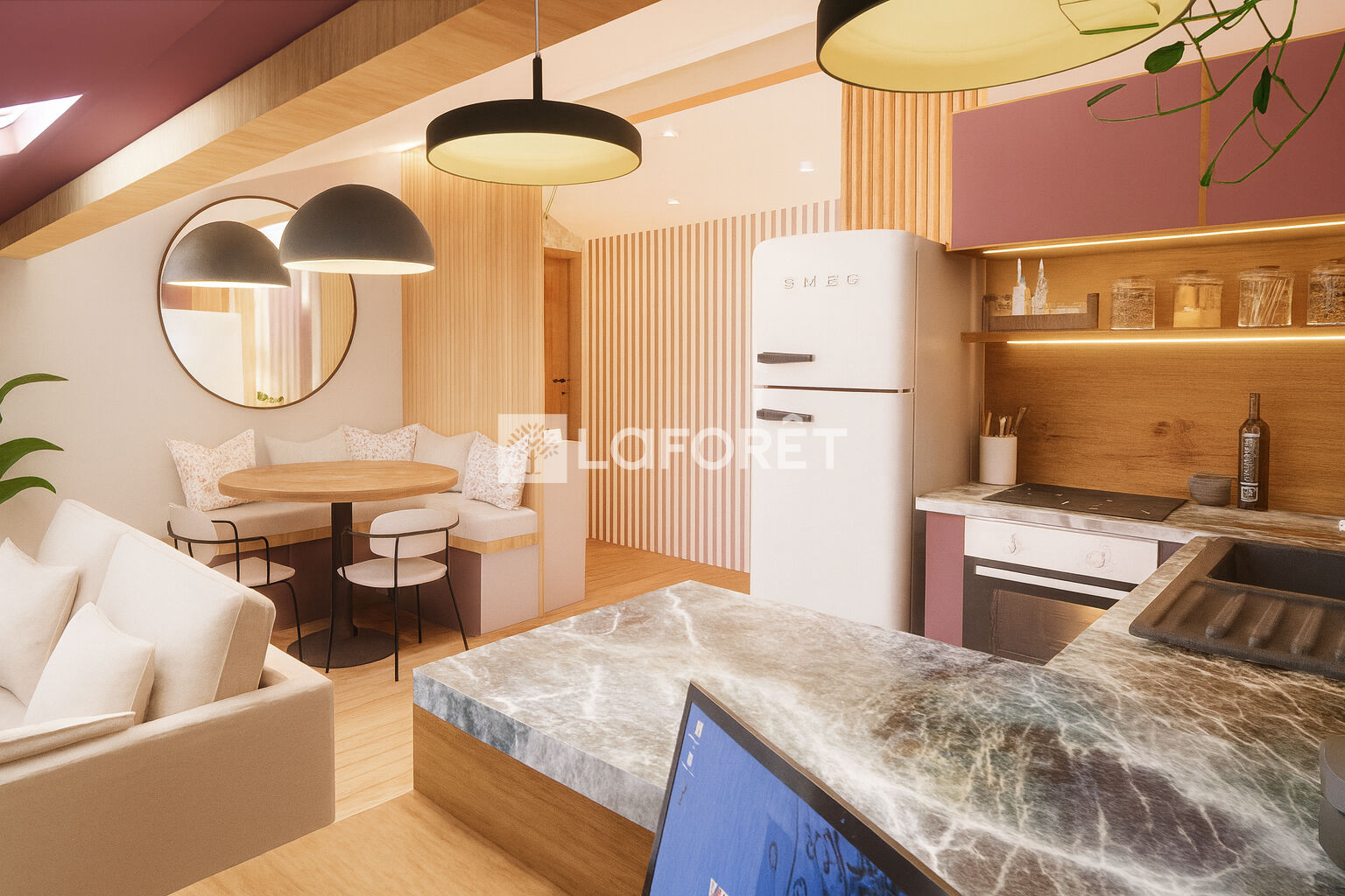 Notre décoratrice a imaginé pour vous un aménagement tendance et optimisé afin de vous projeter plus facilement.