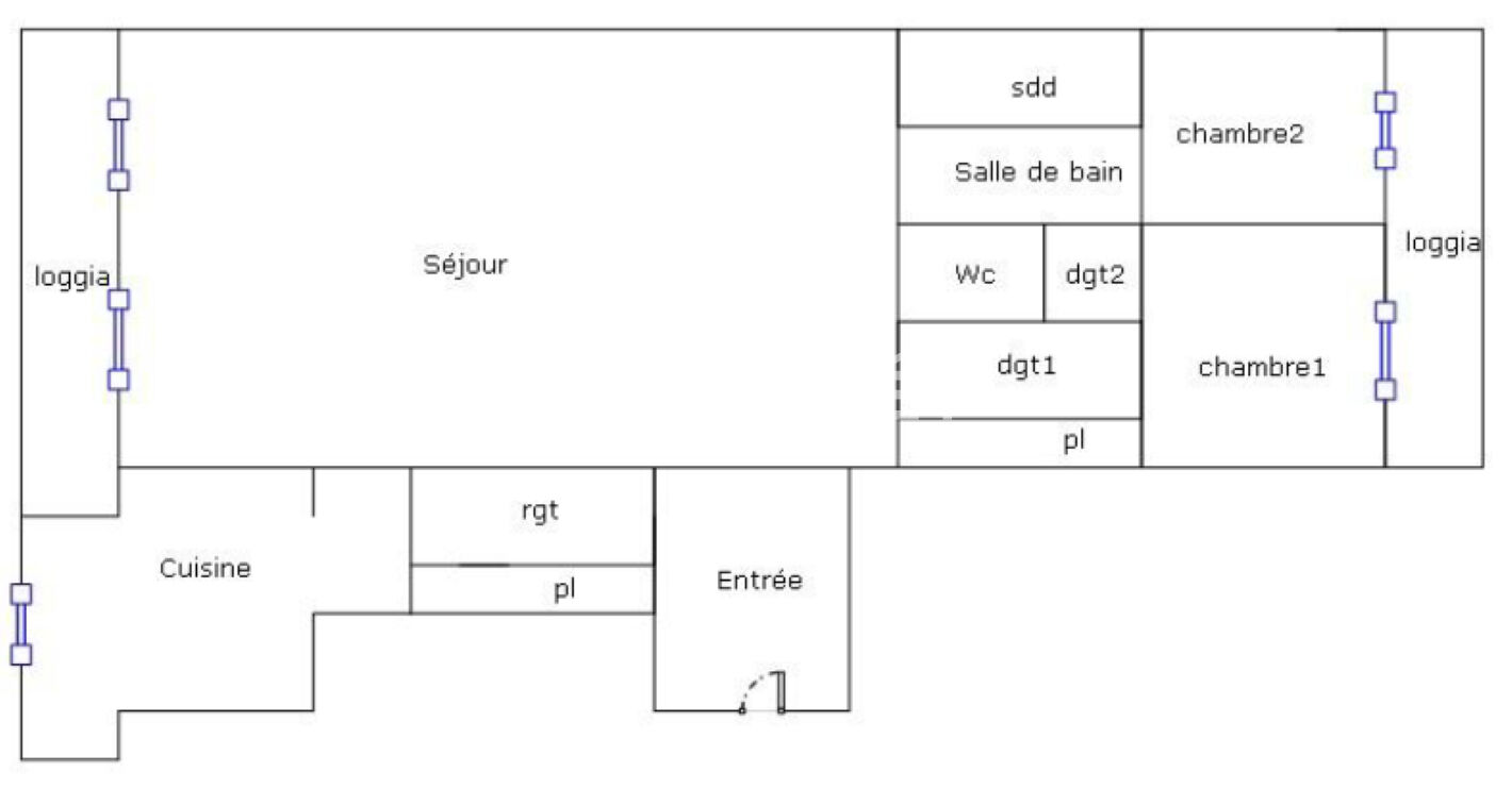 Il se compose d'une entrée avec placard, d'une cuisine indépendante avec cellier et d'un séjour d'environ 40 m² donnant tous les deux accès à une loggia.
