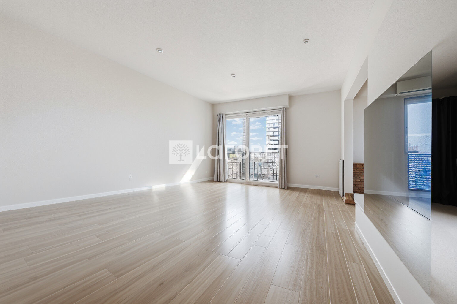 Il se compose d'une entrée avec placard qui dessert une cuisine indépendante et un séjour/salle à manger d'environ 30 m² donnant accès à un BALCON.