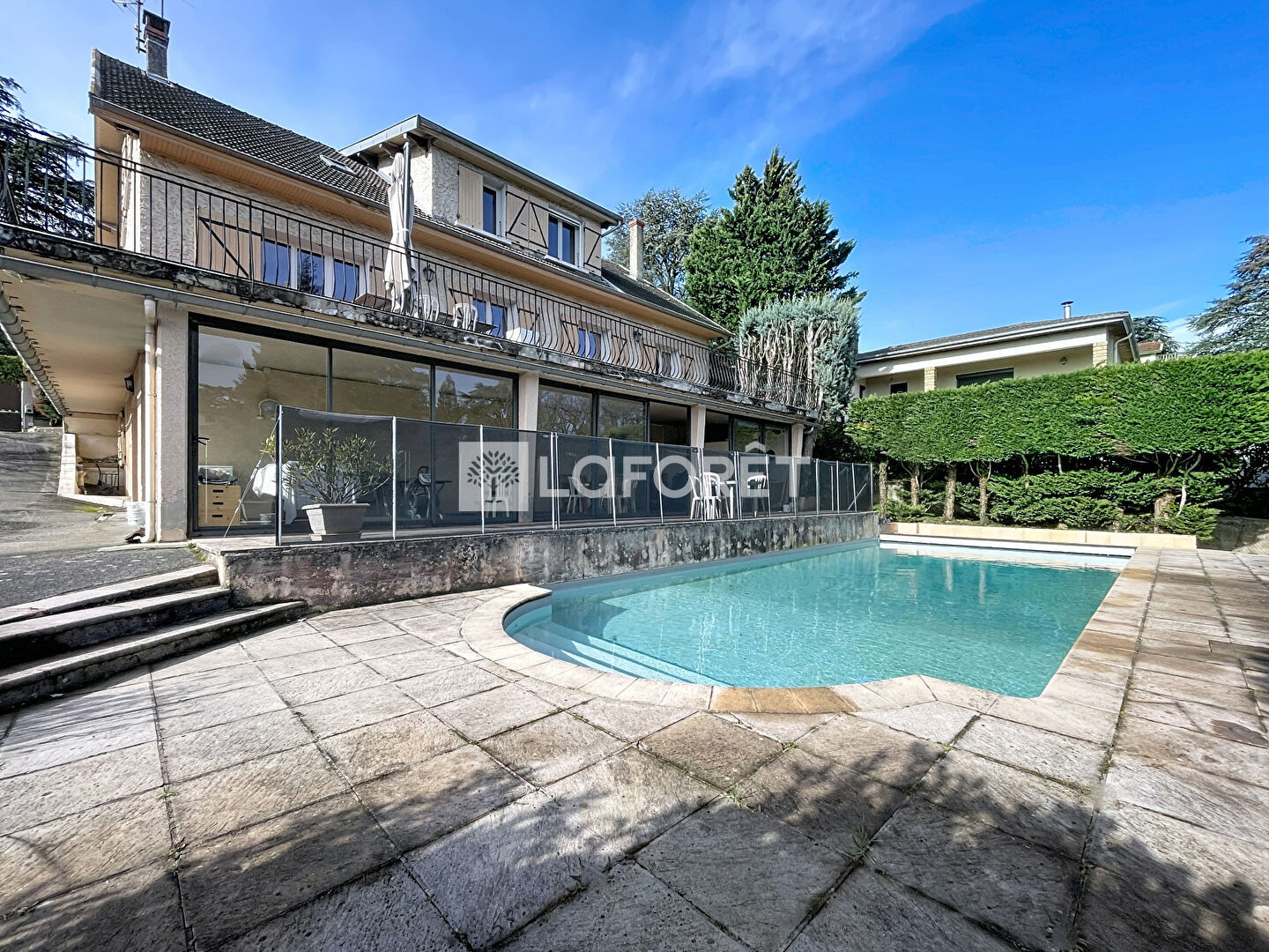 Située dans un environnement calme et résidentiel, à proximité des commodités (bus, périphérique et téo à moins de 5 minutes en voiture, supermarchés, école), cette maison familiale implantée sur un terrain plat et arboré de 1 827 m², avec piscine et ambiance paix et verdure, offre plus de 268 m² habitables répartis sur trois niveaux ( à laquelle, vous pourrez rajouter 141 m² de surface annexes).