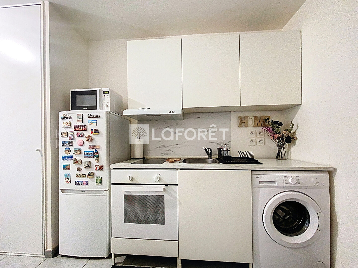 L'appartement se compose d'une entrée avec cuisine aménagée et équipée ouverte, d'une chambre, d'une grande salle d'eau ainsi que d'un balcon agréable.