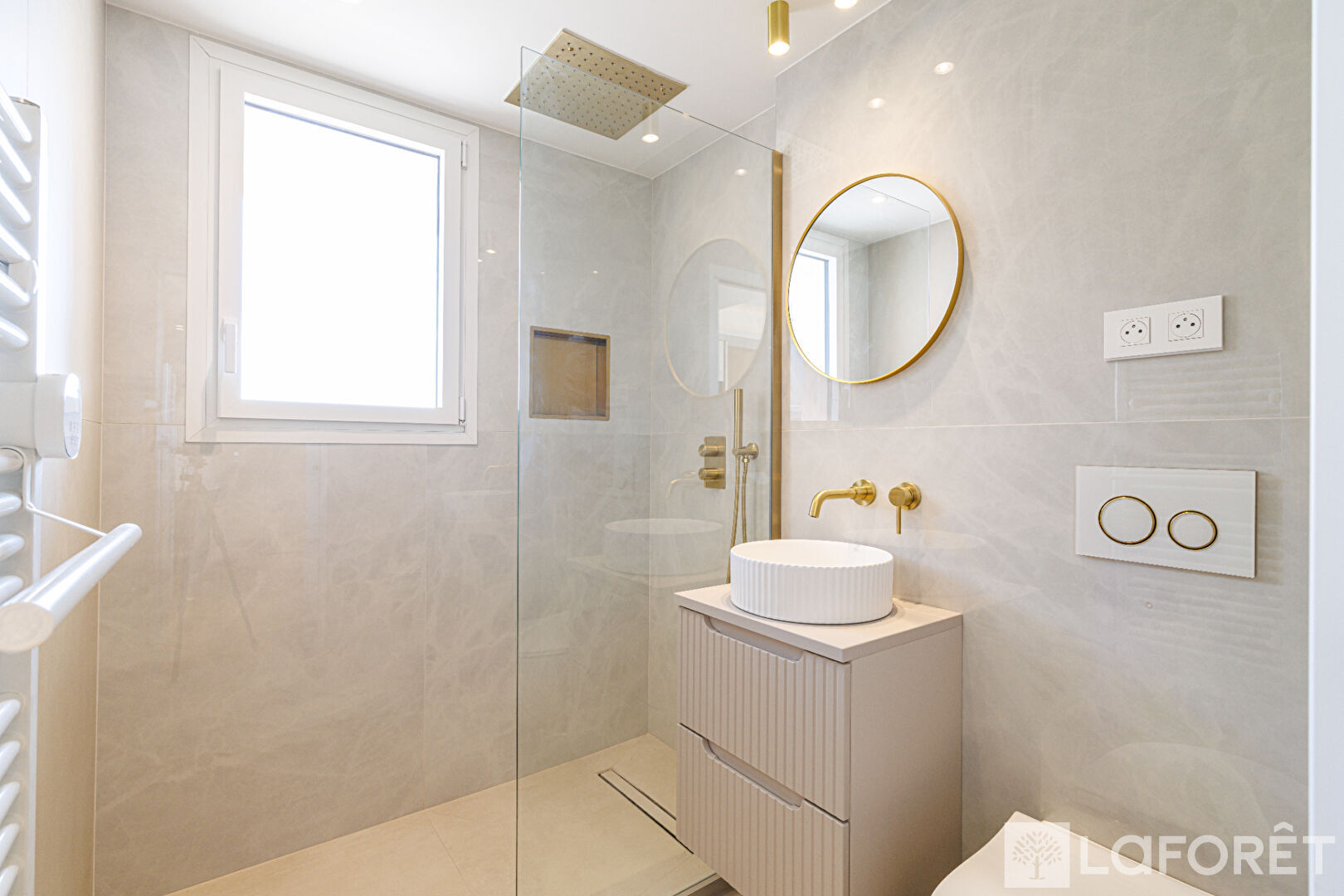 Installé au troisième étage d'une très belle résidence, il bénéficie d'une agréable terrasse de 9 m² ensoleillée offrant une belle vue mer.