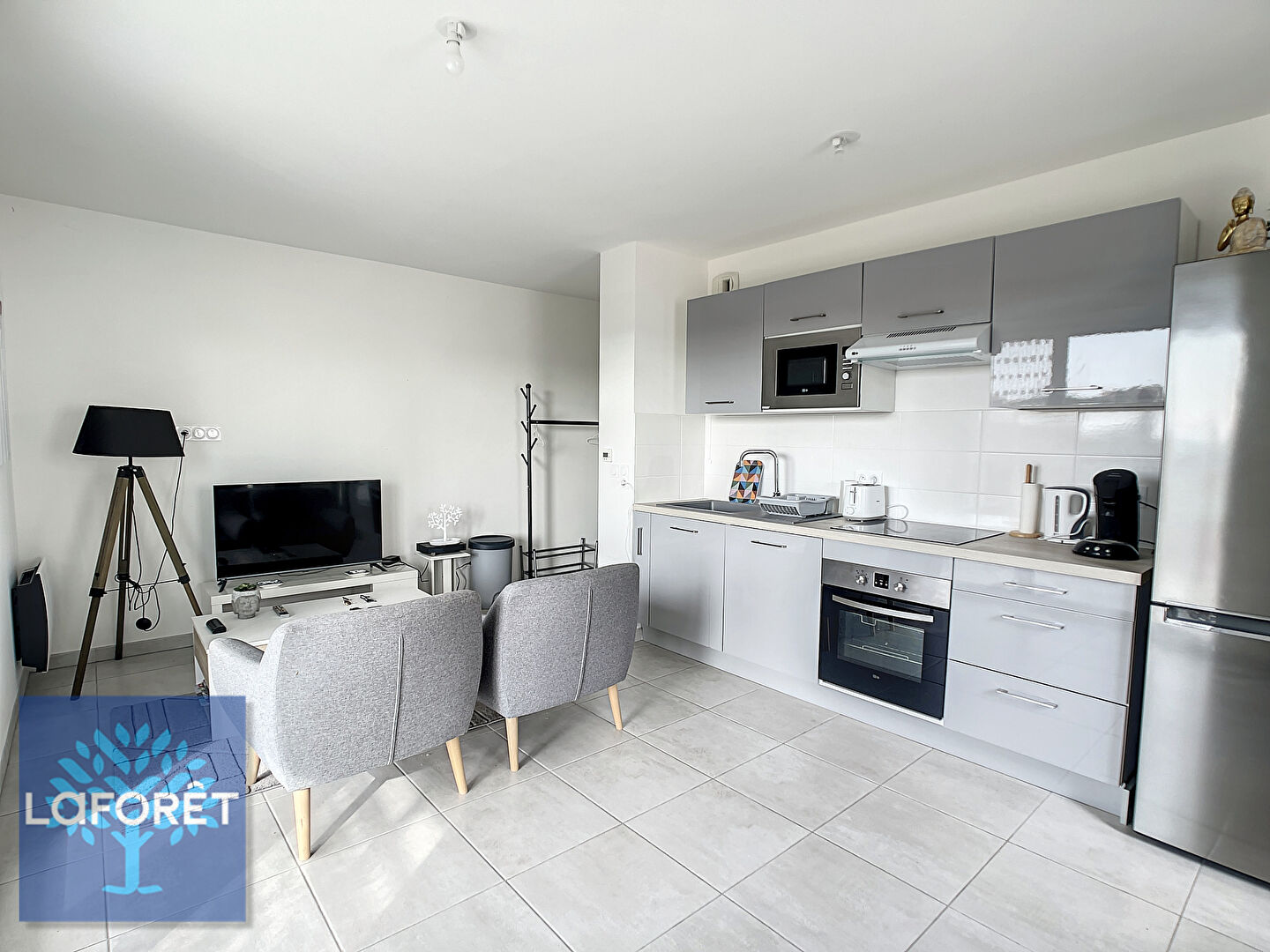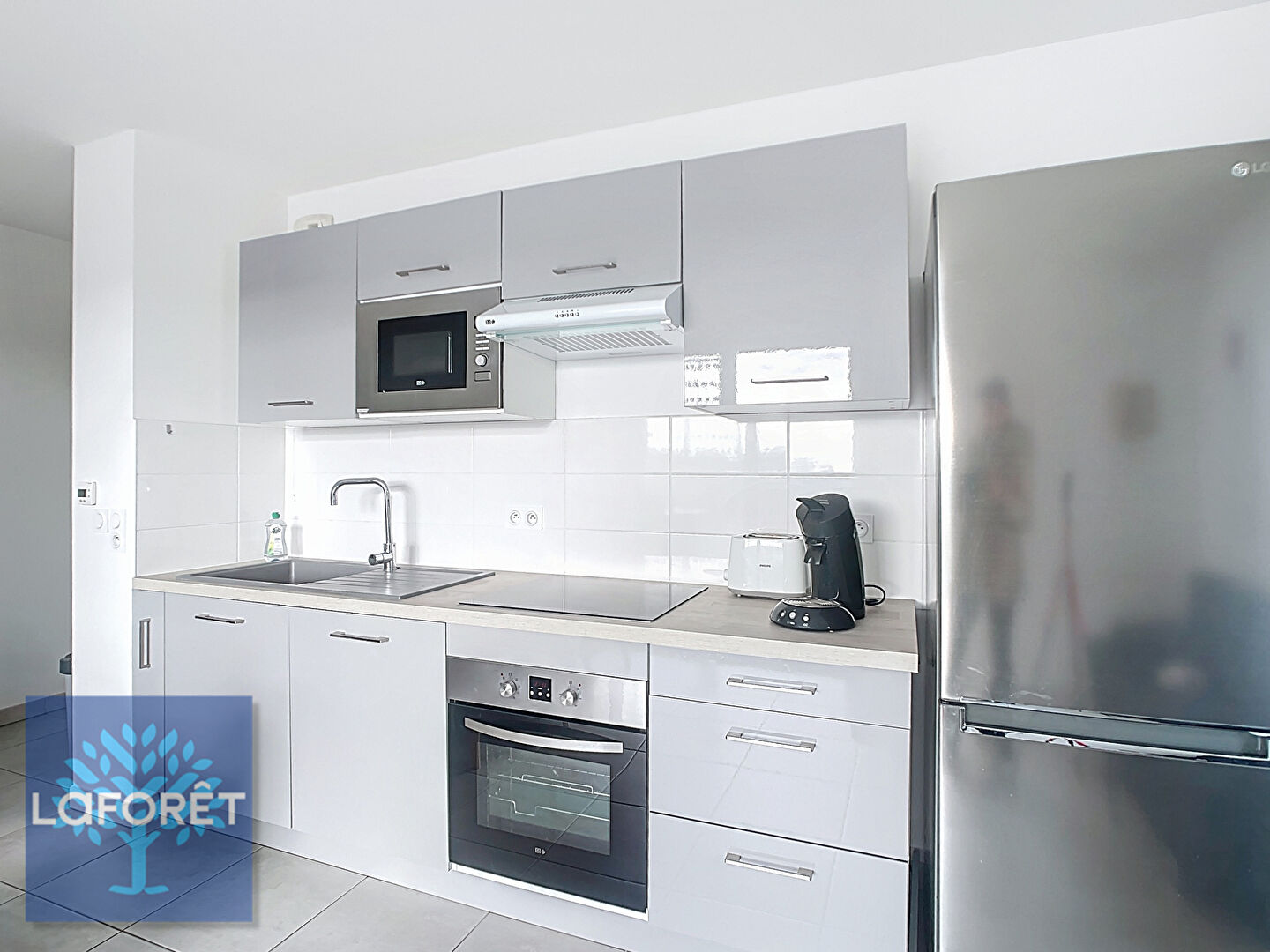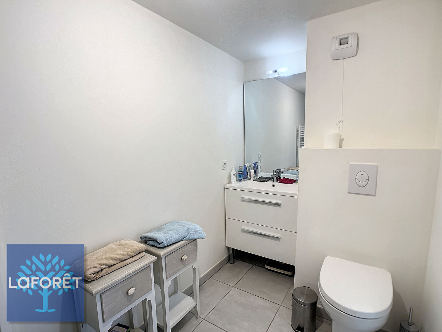 L'appartement comprend une entrée, une grande salle d'eau avec WC suspendu, un séjour avec cuisine ouverte entièrement équipée, une chambre spacieuse et une belle terrasse de 15m² plein Sud sans vis à vis.