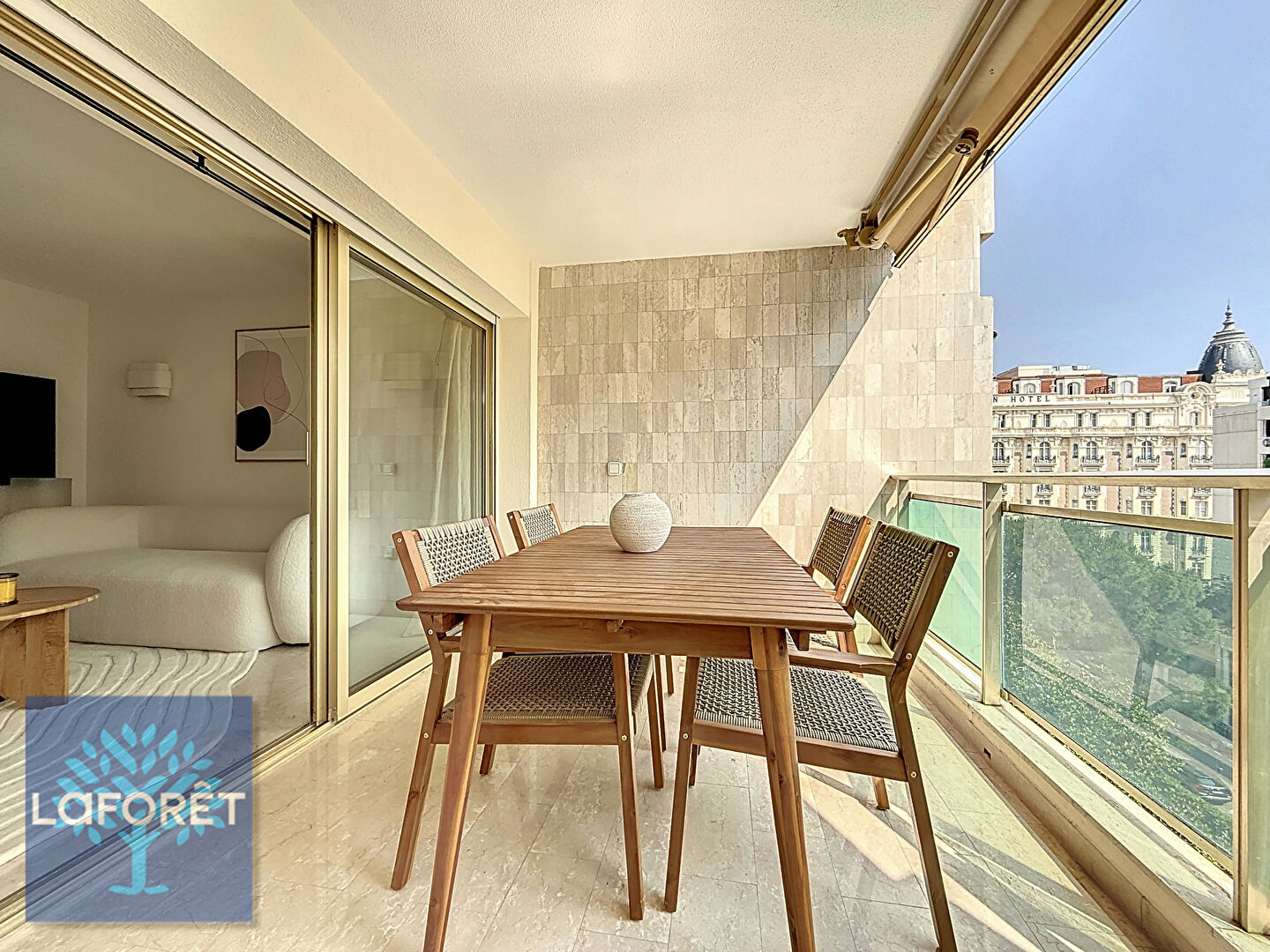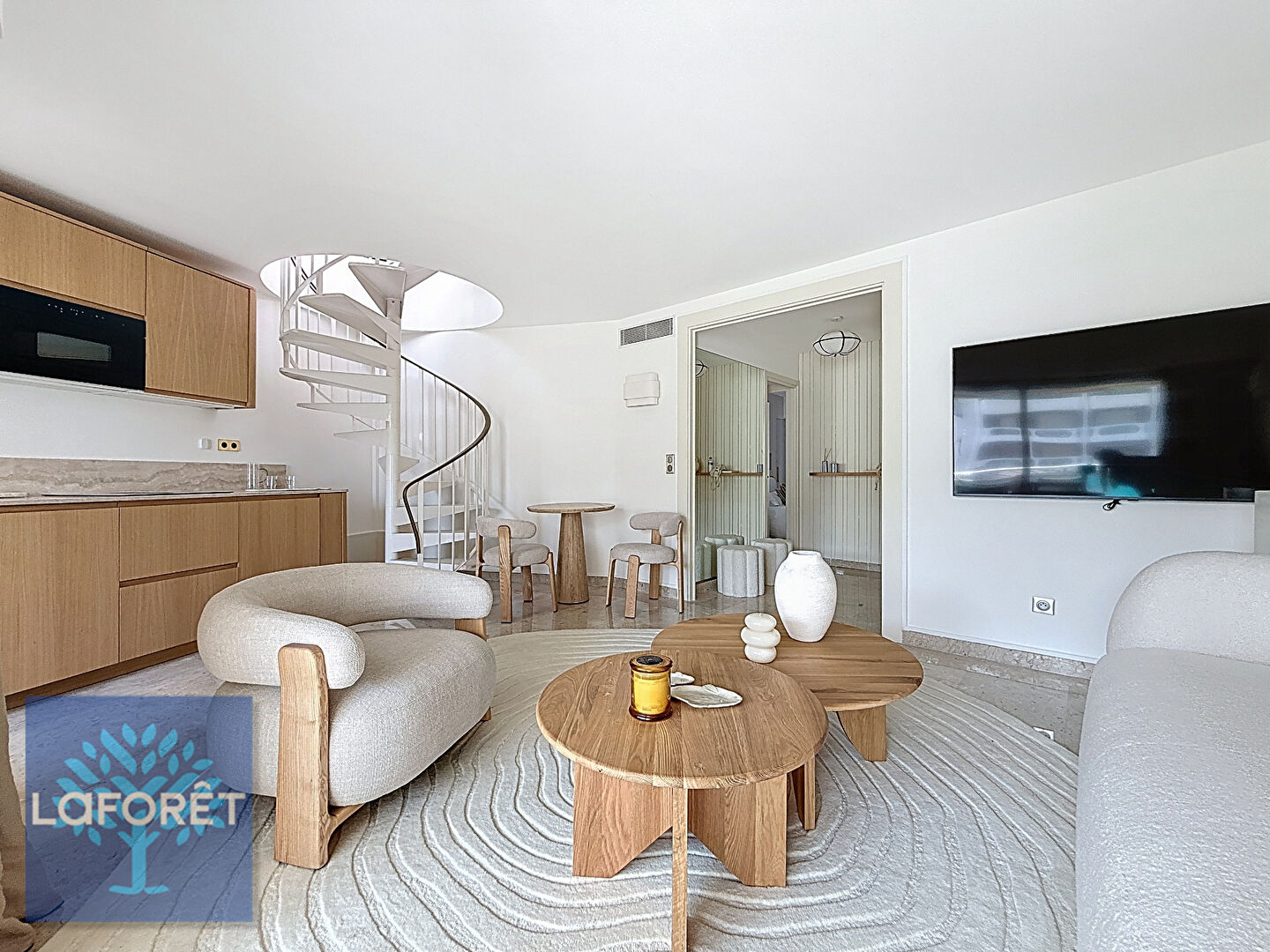 Entièrement rénové avec des prestations haut de gamme, l'appartement comprend une entrée, un séjour lumineux avec cuisine ouverte ouvrant sur une agréable terrasse exposée plein sud. Un escalier intérieur mène à un splendide toit-terrasse aménagé, offrant une vue imprenable sur le Carlton.