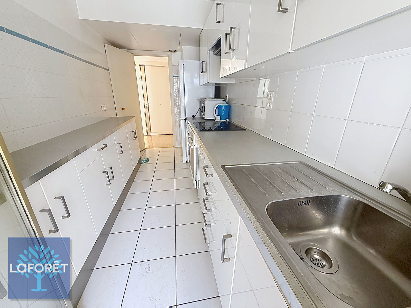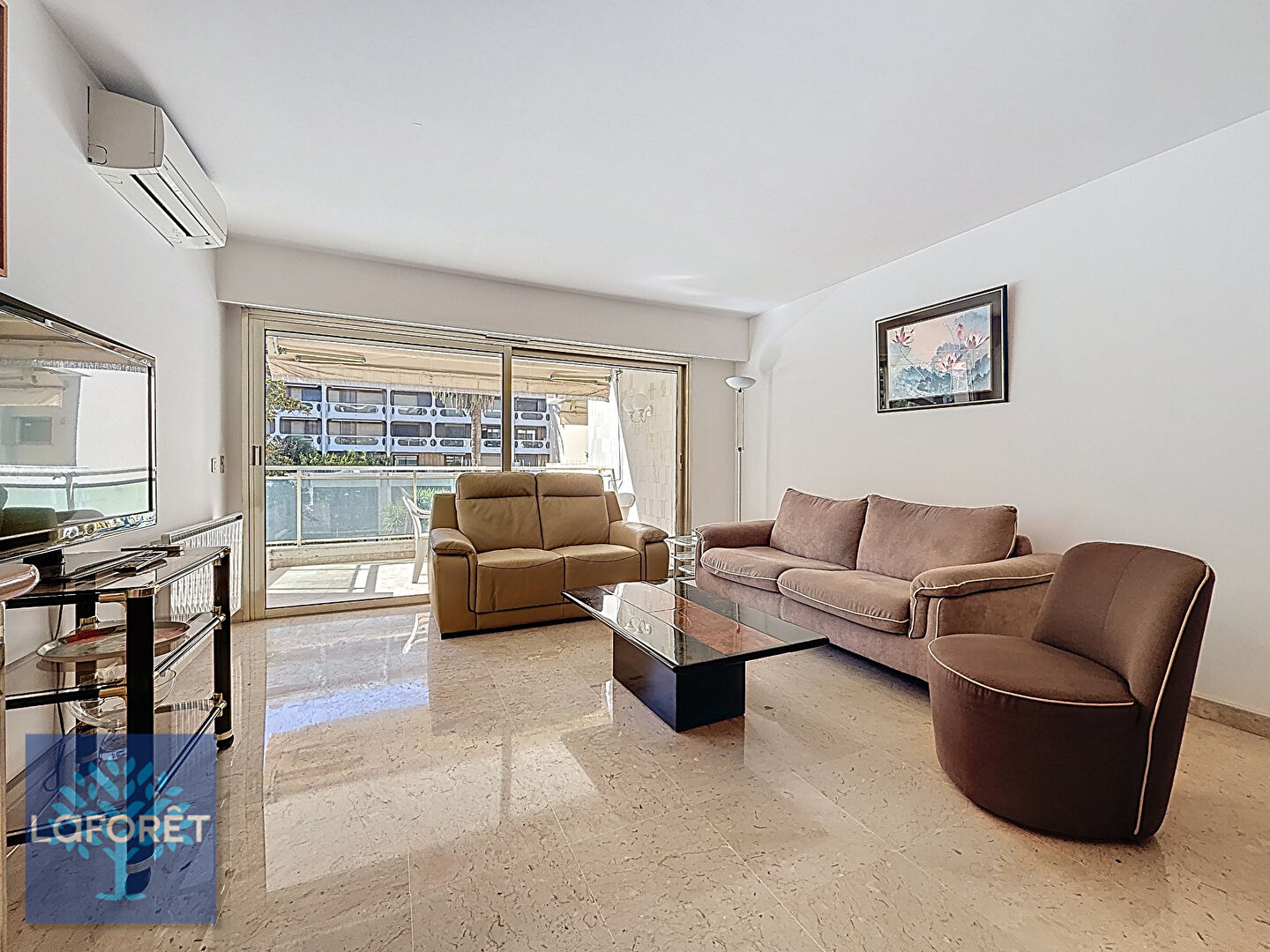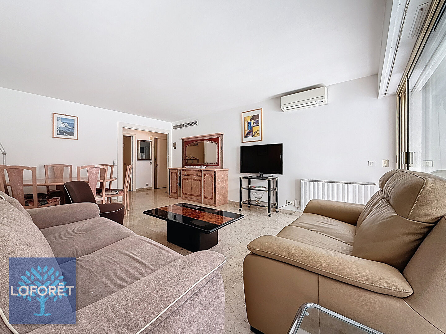 La pièce de vie climatisée ainsi que la cuisine indépendante ouvrent sur une belle terrasse exposée plein sud. La configuration actuelle permet également d'envisager une ouverture de la cuisine sur le séjour afin de créer un espace de vie plus contemporain.
